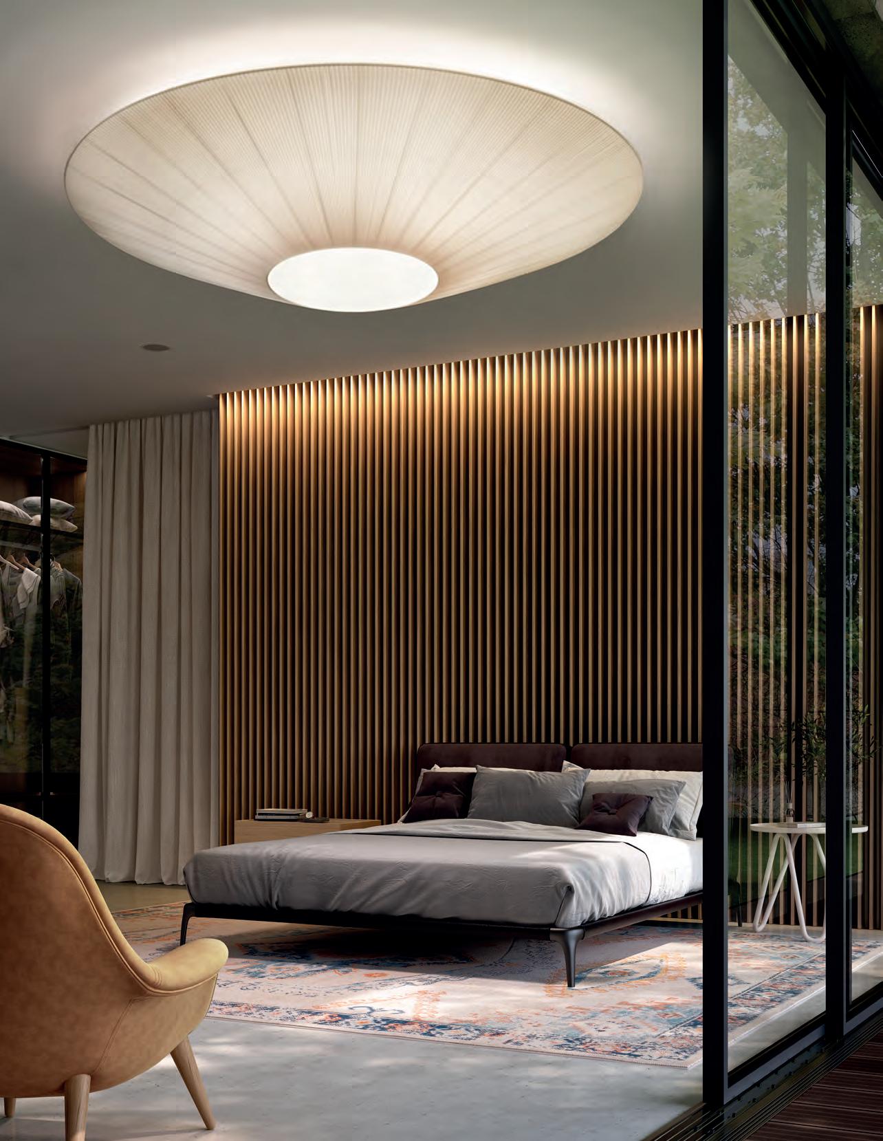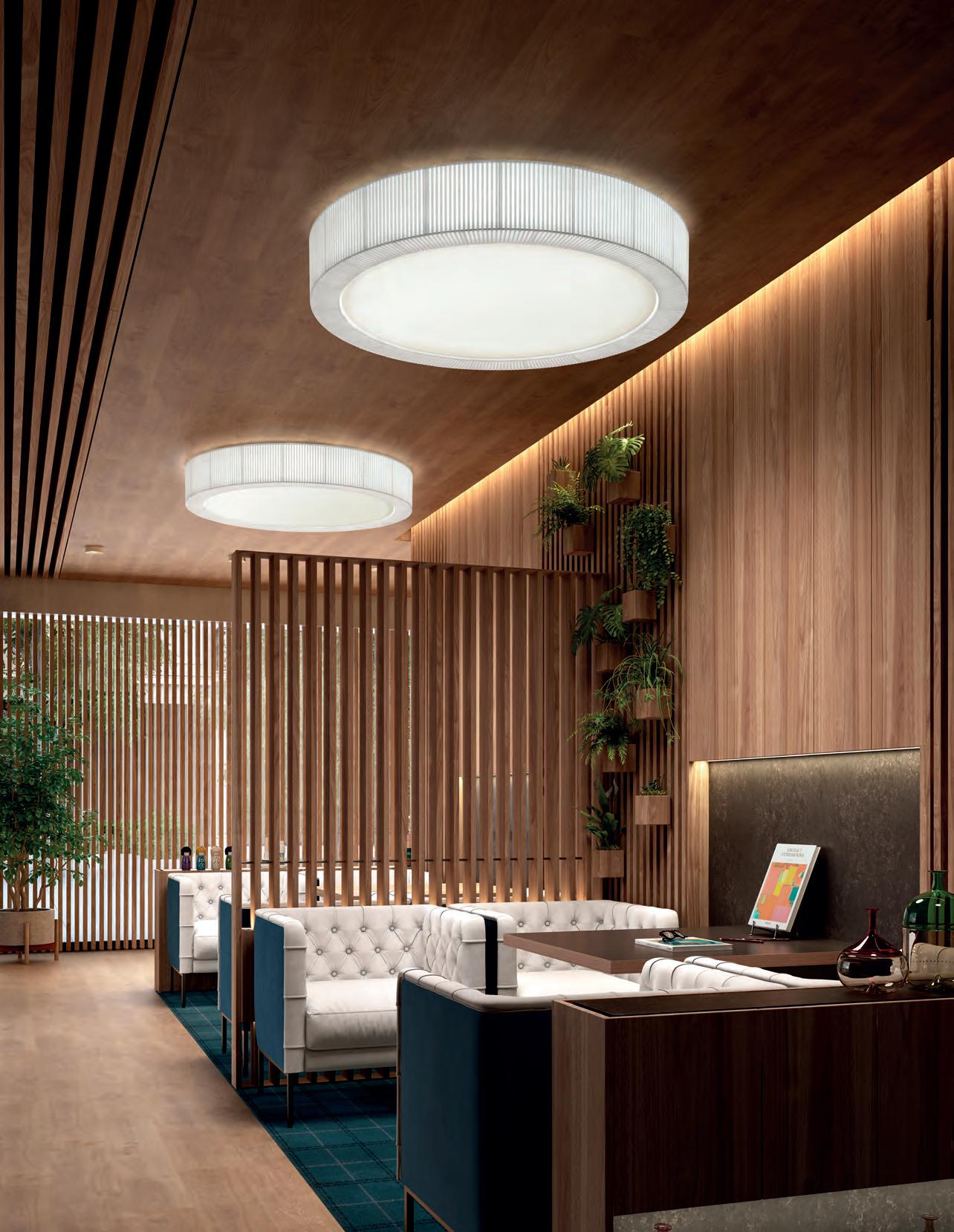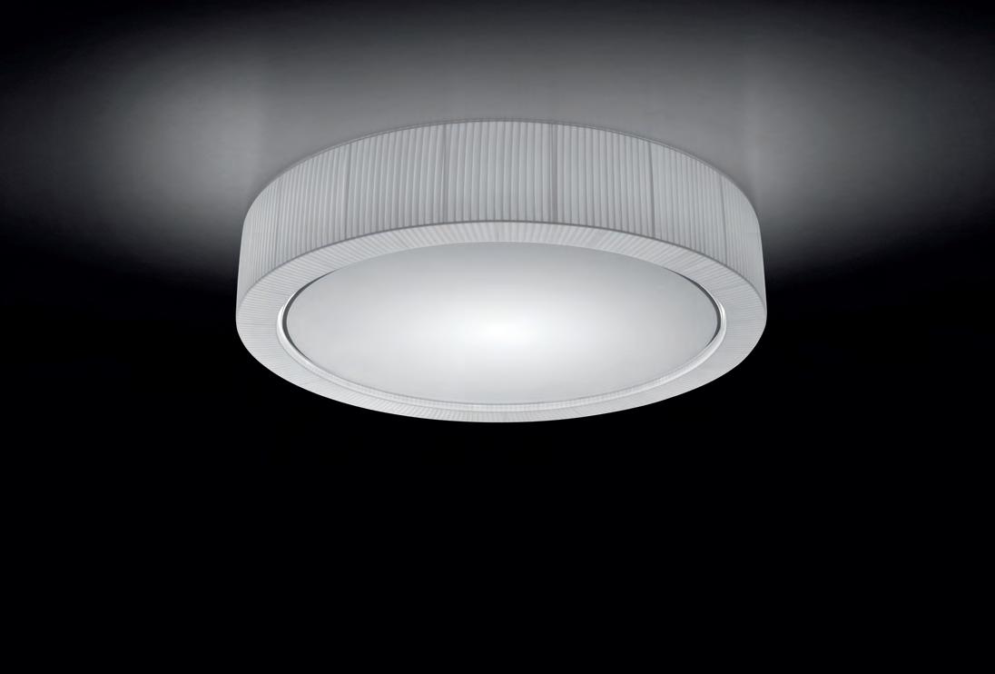 Elegant with its shape, harmonious and of discrete proportions, this ceiling lamp provides light to entrances and corridors.