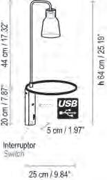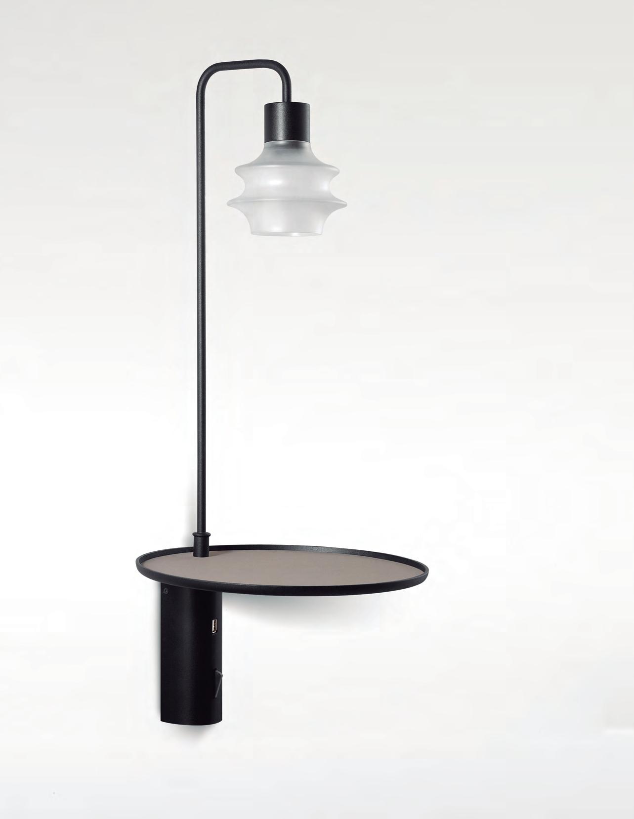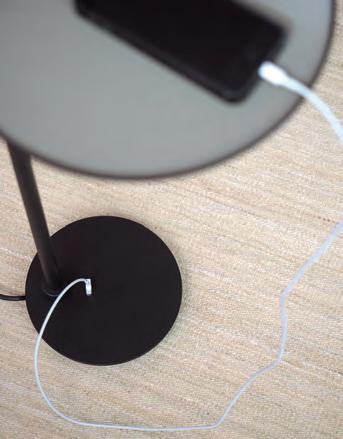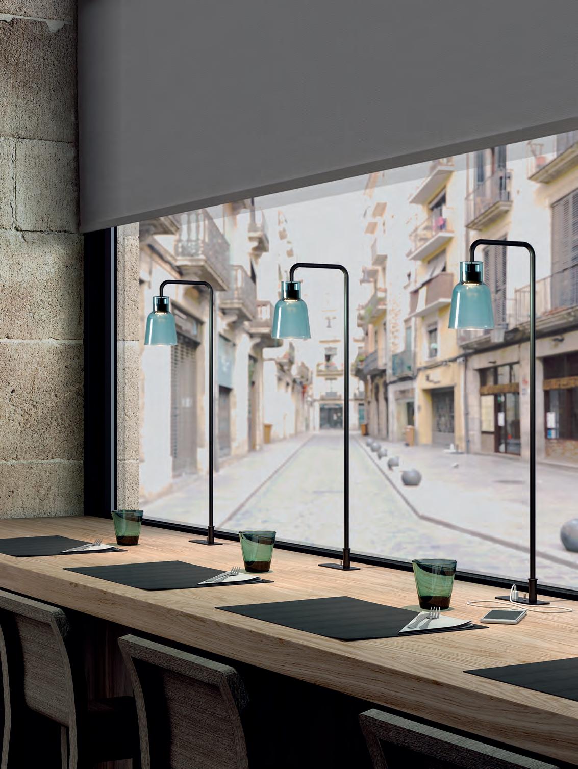 La versión de pie de Drip & Drop dispone de bandeja y conexión USB, ideal para cargar el móvil en la recepción de un hotel o en un bar mientras charlamos.