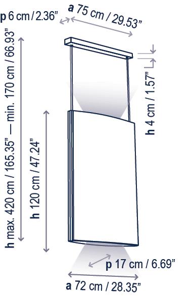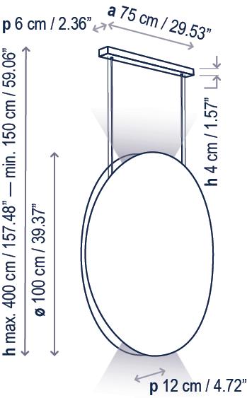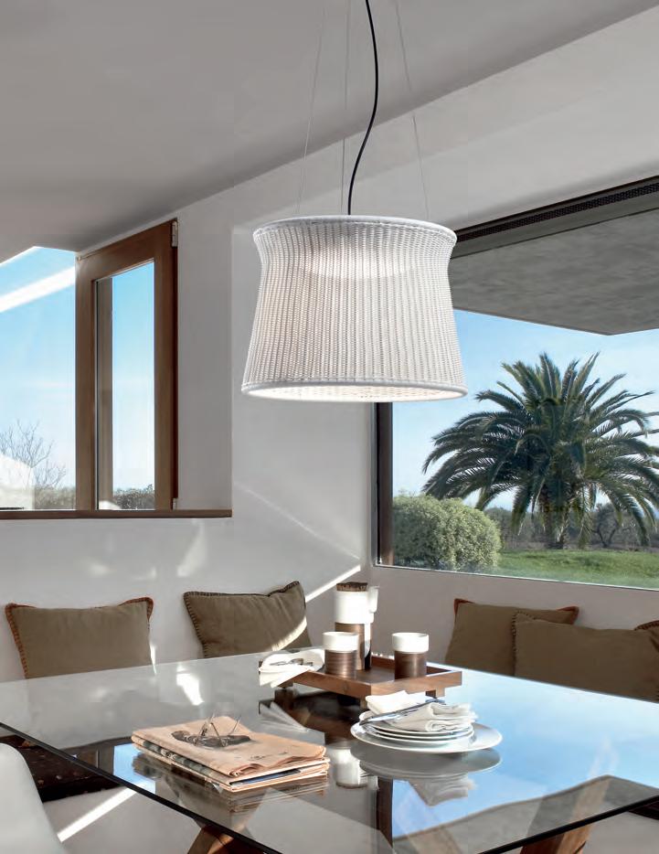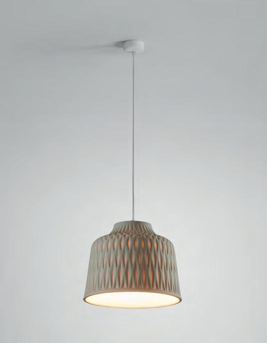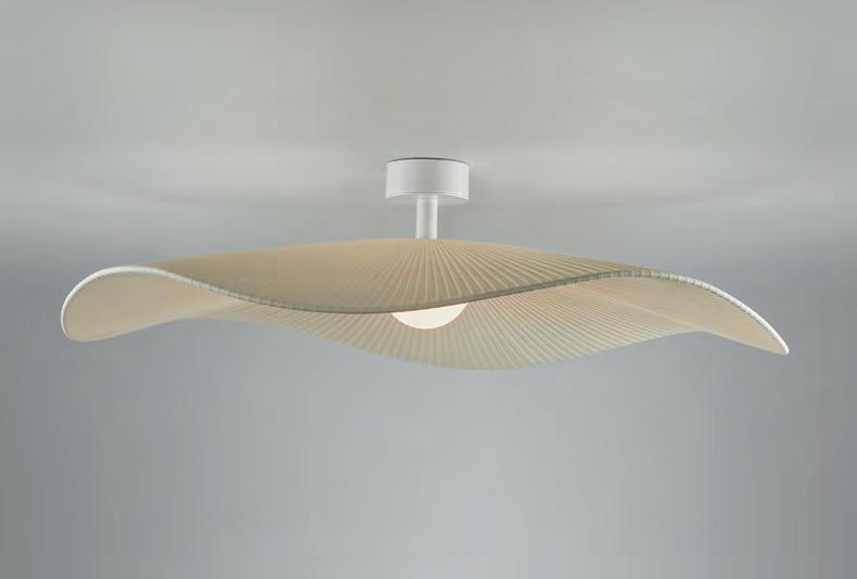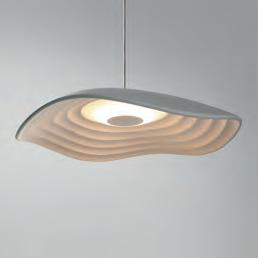 The concept of this lamp is based on a smooth head which draws a wavy shape on its perimeter, the clear contrast with the lamp inner part, that reminds us of the gentle and small oscillations that marine currents form on the Mediterranean coast.
