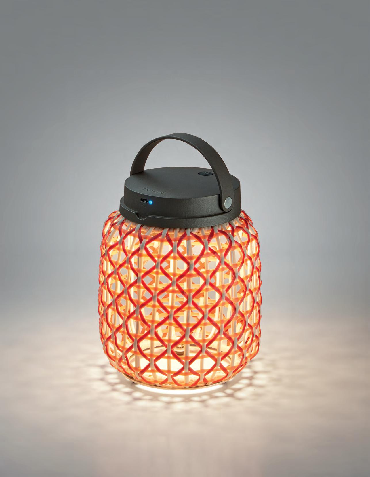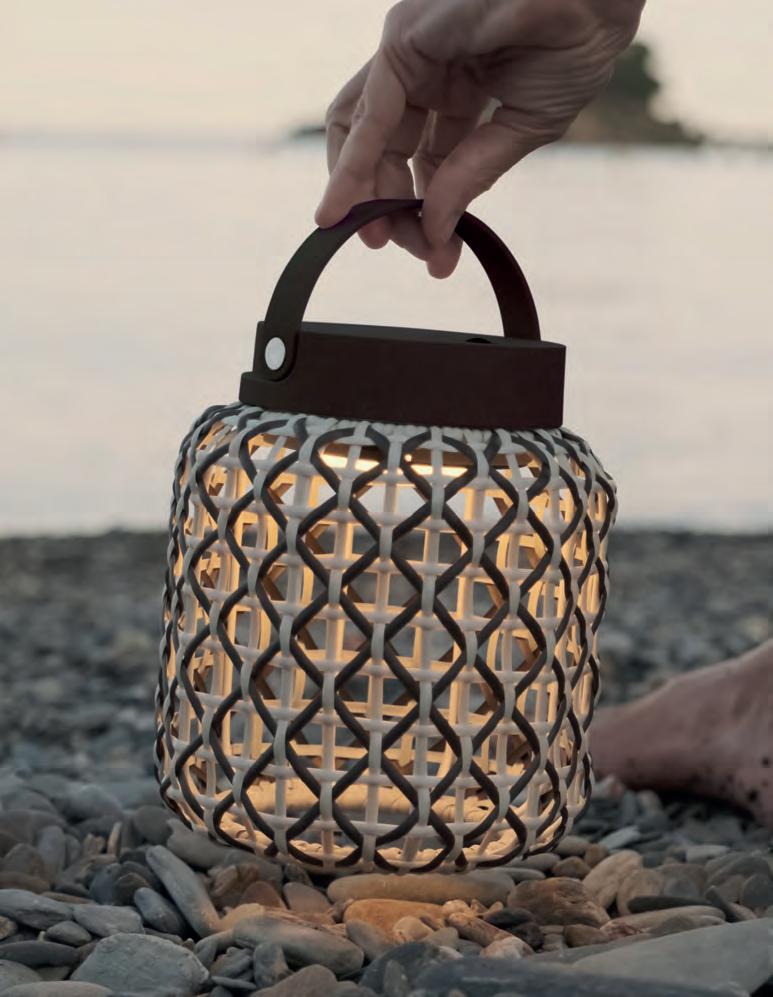 Tanit es una lámpara de sobremesa portátil y recargable, de luz suave y tamizada por una pantalla tejida de forma artesanal con hilo de algodón. Por su ligereza, tamaño y autonomía, las lámparas Tanit pueden tener distintas aplicaciones tanto en el ámbito doméstico como en terrazas de restaurantes y hoteles. Su portabilidad nos permite dar unos pasos más allá y transformar los espacios de exterior en acogedoras zonas de tranquilidad y calidad lumínica.