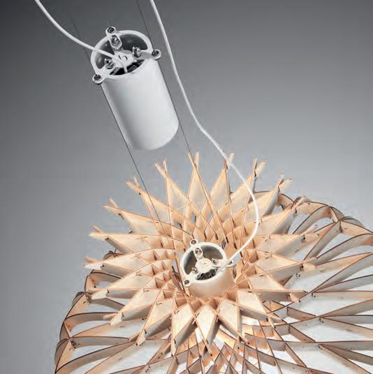 The Mod seeks its inspiration in the flora kingdom, as it can be grouped to form a garden of possibilities through the finishes of the clusters of flowers. The petals of its flowers are customizable, being able to adapt to almost all types of materials; Plates smooth, perforated, deployed or drawn and laser cut according to the agenda you want to use. They also accept natural materials, such as wood or raffia, and if we let our imagination fly, we can even crochet them with colored thread.
