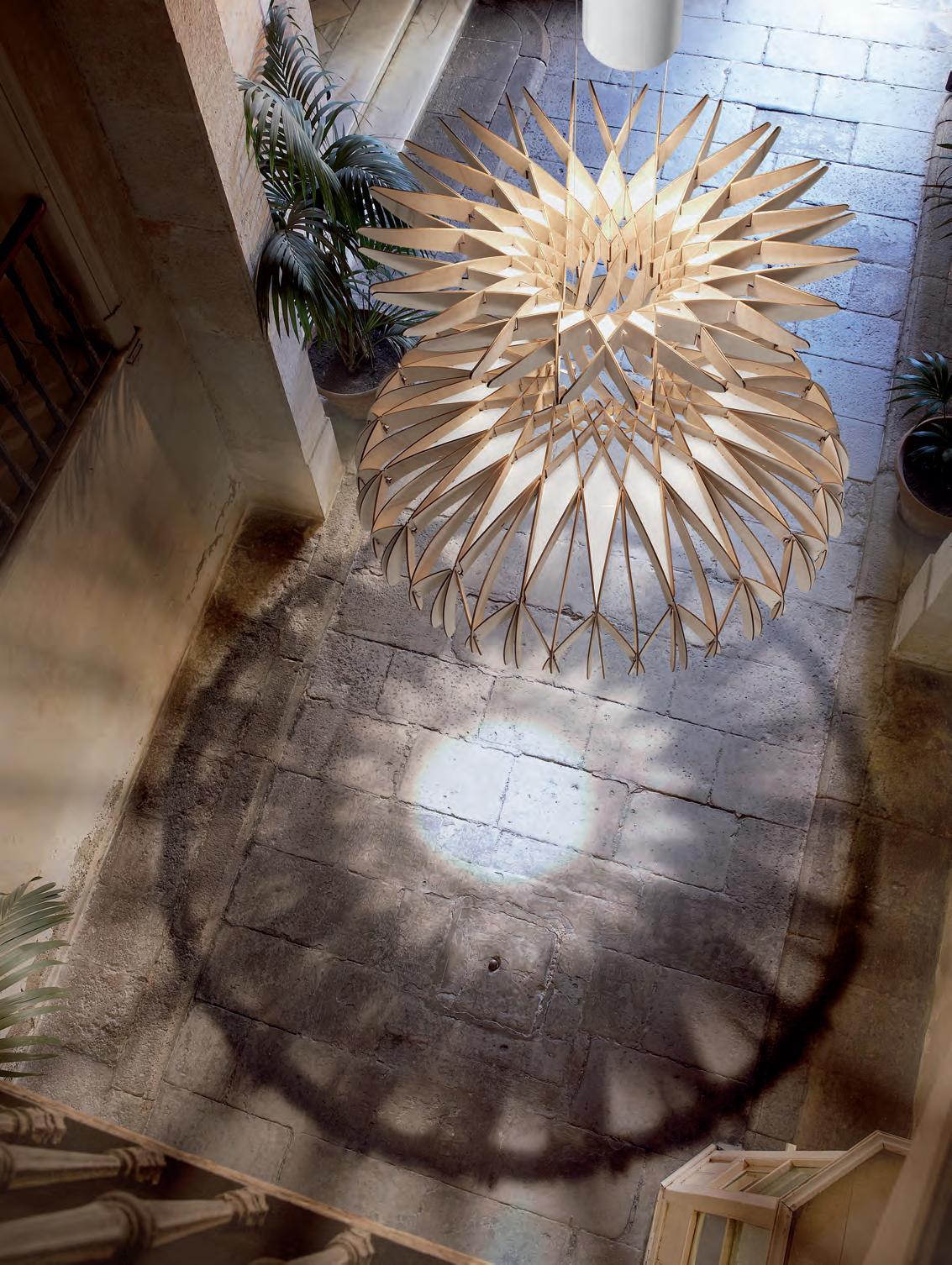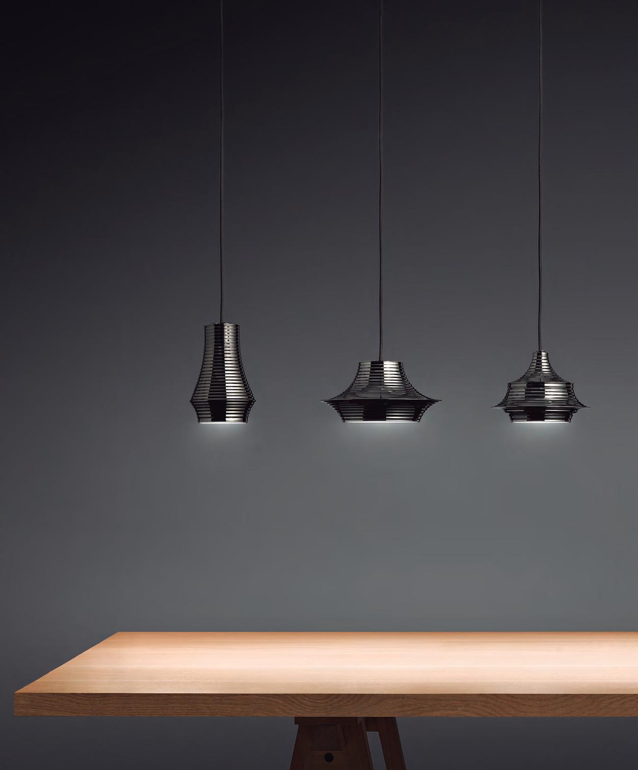 Siam breaths a certain oriental air. A luminaire that allow to create different individual or group compositions, superposing shades partially, and creating a perfect mural for any space.