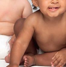 For tots, pick products that help create a barrier to retain natural moisture, such as healing ointments, which are thicker but more difficult to spread. Warm them by putting a dollop in your palms and rubbing your hands together. Baby will love the warmth and the massage.