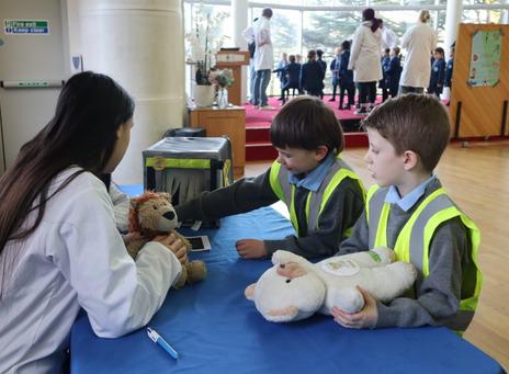 The student-led annual event which takes place at Devere Hall helps children become familiar with healthcare environments, learn about medicine in a safe, fun environment. It features three main stations mirroring a real hospital experience: a waiting room, a treatment room and an exercise area. In the waiting room young children put on some medical scrubs, checked out some medical equipment, used a stethoscope while engaging in fun anatomy puzzles and colourful activities. In the treatment room, medical students assessed and treated the teddies with medical supplies kindly provided by the Bon Secours Hospital. In the exercise area, children are taught a variety of exercise routines to support their teddies return to full health.