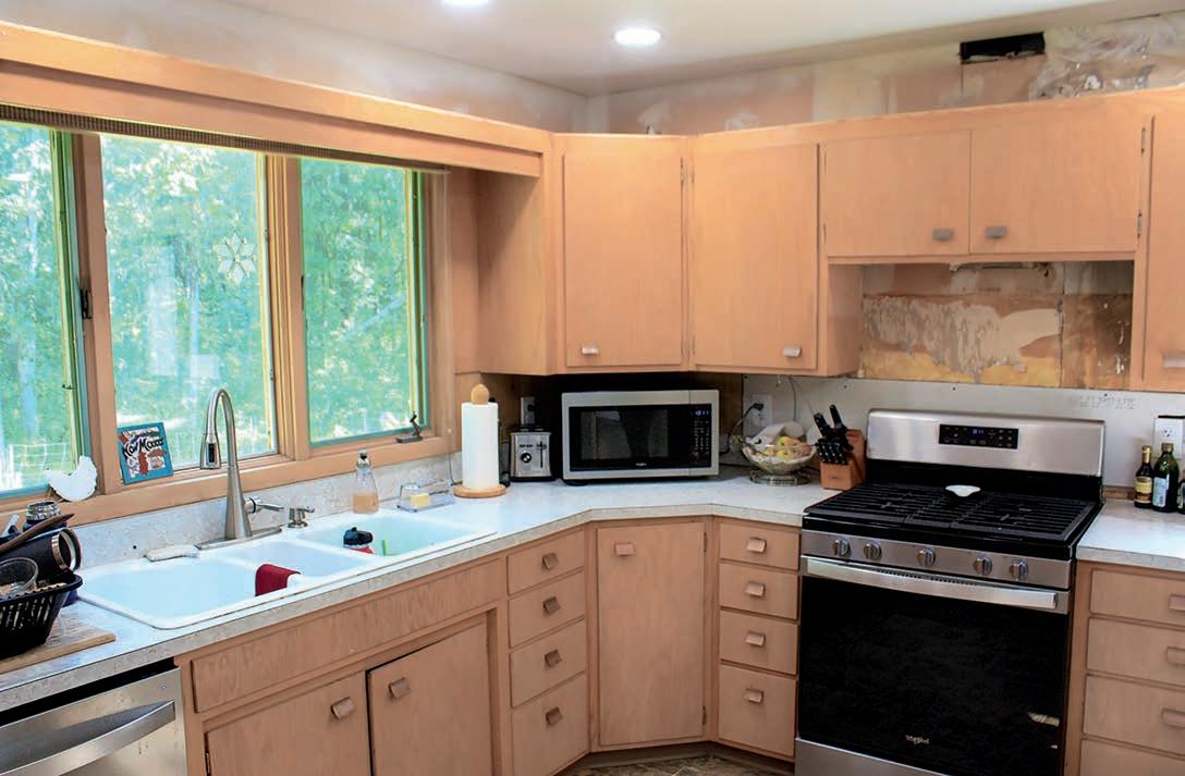 Though renovations are still ongoing, the kitchen has taken form with brand new appliances. Photos by Elizabeth Vierkant / Fall Home