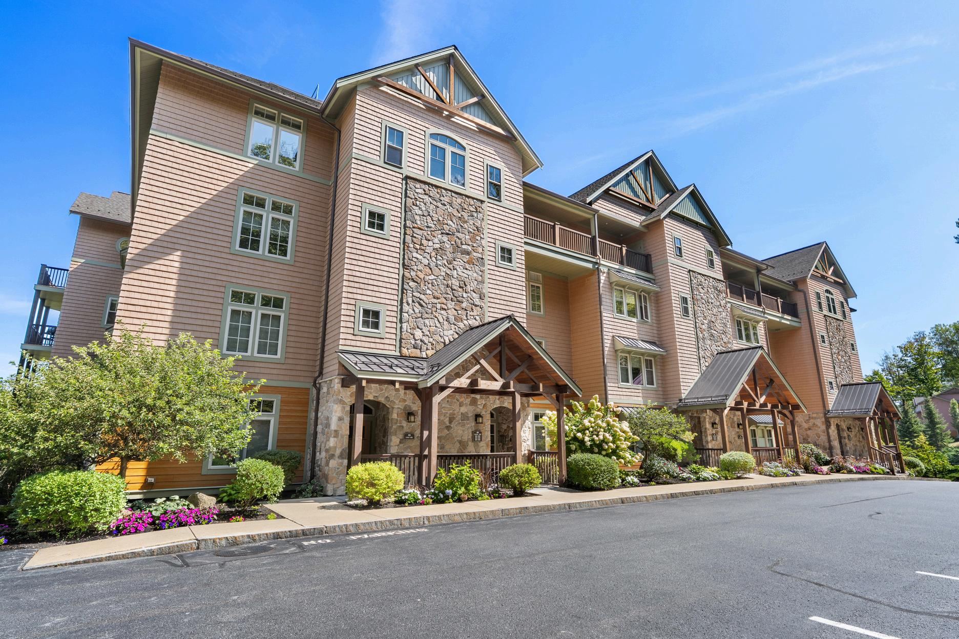 Welcome to Bluegill Lodge #106 in Meredith Bay’s gated community! Rarely available, this firstfloor end unit combines the convenience of single-level living with added space, light, and privacy. Unique to end units, #106 features a larger covered deck and direct access through a private exterior door, making it easy to come and go. Especially convenient for access to the Meredith Bay Groomed trail network with your furry friends Extra windows bring in abundant natural light and frame views of Lake Winnipesaukee. Inside, the open-concept design offers a spacious kitchen, dining area, and great room anchored by a cozy gas fireplace and flowing seamlessly to your oversized deck. The primary suite includes a walk-in closet and spa-like bath, while two additional bedrooms and a second bath provide comfort for family and guests Elevator service from the heated garage delivers you directly to your home no shared hallways. Meredith Bay residents enjoy resort-style amenities: pools, tennis, pickleball, bocce, walking trails, fitness center, and access to Akwa Marina with sandy beach and seasonal restaurant. Just 15 minutes to Gunstock for skiing, this condo is ideal for four-season enjoyment and is the perfect lock-and-leave property for snowbirds seeking a home in the Lakes Region with its secure underground parking