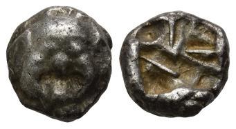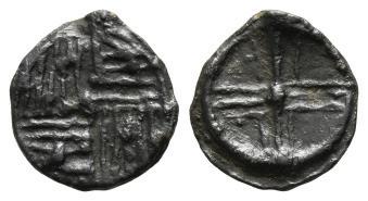 Class II. Outline head to right around large central nipple / Crude outline bull to left around large central nipple. ABC 174; BMC 715723; SCBC 64. 1.33gr, 15mm. Very Fine. £40 - 60