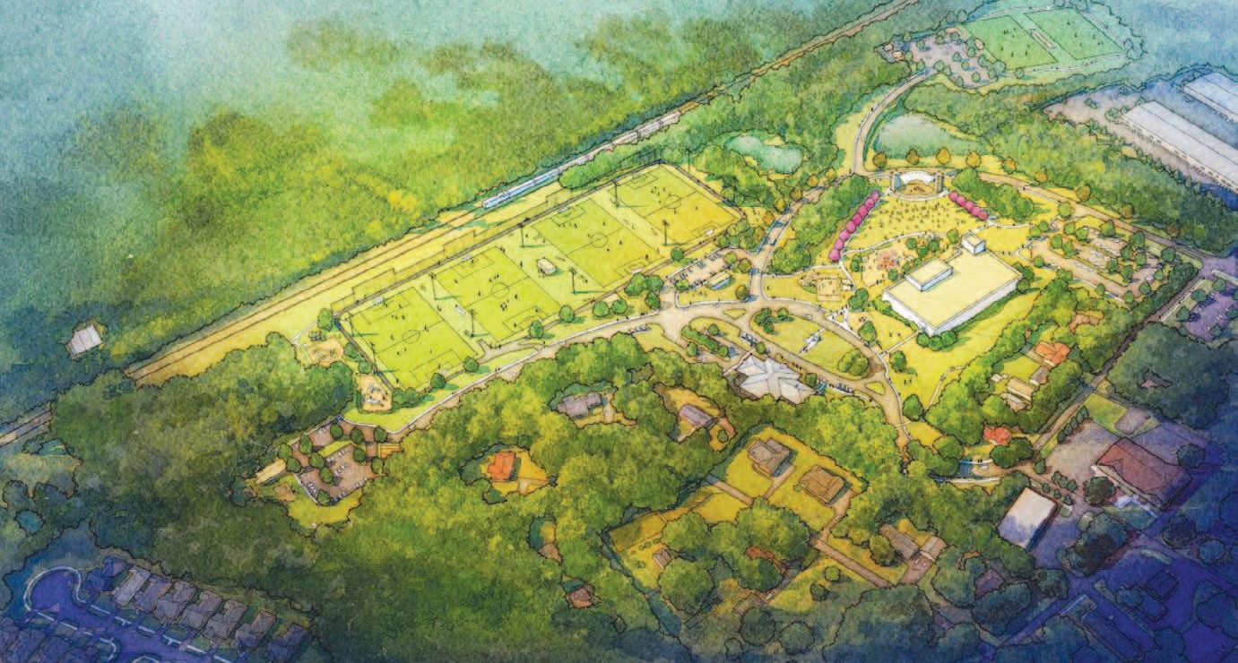 This 33 acre community park is comprised of multi-purpose fields, picnic areas, playground, restrooms, walking trails and natural areas with established vegetation.