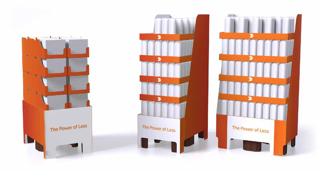 Vi har integreret sider, hylder, hyldeunderstøtning og base i ét stykke for at gøre det lettere for dig at håndtere displayet. Det giver dig nem lagerstyring, kort pakketid og stor robusthed.