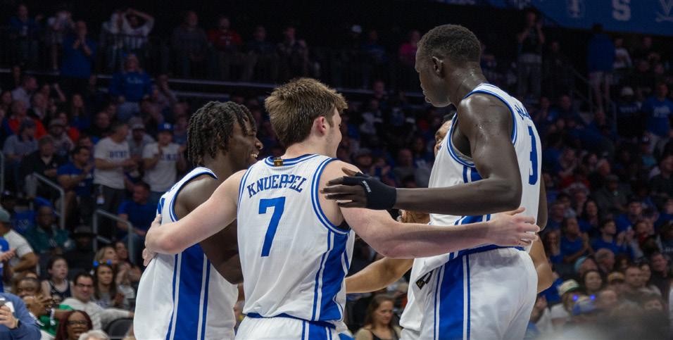 Flagg went down with an ankle sprain in Duke’s ACC Tournament quarterfinal against Georgia Tech. While the Blue Devils were still able to cut down the nets without him, their efficiency took a noticeable hit. From the beginning of the season to Duke’s regularseason finale against North Carolina, the Blue Devils were the second-most efficient team in college basketball, according to Bart Torvik. However, in three games where Flagg was mostly absent, Duke dropped to 13th.