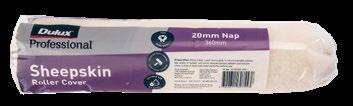 Roller Sleeve 11mm x 270mm 3 Pack » Great pick up & release of paint » Economical trade pack $40. 00 GREAT VALUE SAVE UP TO 30% OFF SELECTED ROLLER COVERS IDEAL FOR HIGH TRAFFIC AREAS WORKS HARD TO RESIST SCUFFS NEW TECHNOLOGY For further information visit dulux.com.au NEW Bringing you the latest technology in roller sleeve cleaning » Buy high quality roller sleeves and reuse them again and again. » Easy to use water resistant control panel with one touch automated sleeve cleaning » Gives roller sleeves a deep, high pressure clean in seconds $1750 NOW AVAILABLE Ask in-store today Ultra Glide Lite Roller Frame 270mm » Lightweight frame » Easy glide bearing system » 6 wire cage frame to stop cover slippage SAVE $4.50 WAS $22.40 $17. 90 Unifiber Roller Cover 11mm x 270mm 6 Pack » Economical polyester roller sleeves » Value pack SAVE $6.56 WAS $21.51 $14. 95 Sheepskin Roller Cover Range » Merino wool for a reliable premium finish » Prevents matting and minimises fibre loss » Exceptional coverage with premium finish 30% OFF 30% OFF 4 X POINTS THE ENTIRE RANGE