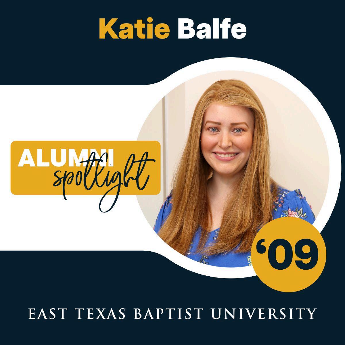 As the Vice President of Human Resources for Twin Eagle, Katie Balfe ('09) fondly remembers her time at East Texas Baptist University. Katie now lives in the Houston area and enjoys being involved in her local church, The Woodlands First, traveling, and spending time with family and friends. As a Business Administration student, it was her Old and New Testament professor who had a lasting impact on her. Learn more about Katie and her time at ETBU in this month's Alumni Spotlight.