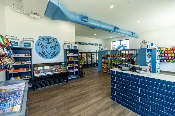 ETBU's Blue Bengal Grocery Company, located inside Billy & Winky Foote Hall at Tiger Yard, is now open. Inspired by urban grocery markets like Southpoint Grocery in Memphis, Royal Blue Grocery in Austin, and Foxtrot Market in Chicago and Dallas, the Blue Bengal is an on-campus micro-market store, providing a vast array of grocery foods, snack items, beverages, household essentials, and branded merchandise for students, faculty, and staff.