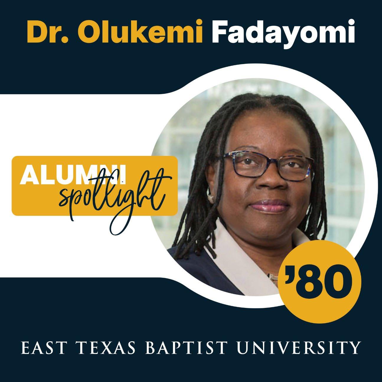 Dr. Kemi Fadayomi (’80) graduated with a Bachelor of Science in Chemistry from ETBU. She went on to earn a Master of Science in Biology/Microbiology from Stephen F. Austin State University and eventually a PhD in Biology/Immunology from the University of North Texas. This led to a successful career in higher education. The lessons and skills she learned at ETBU established a foundation of learning to become a successful leader in her field as she taught in the college classroom for 24 years and is now an educational consultant.
