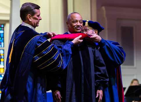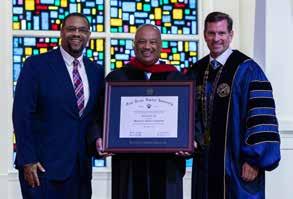 storm, Dr. Luter emerged as a steadfast spiritual leader, helping not only to rebuild his church but also to restore the faith and unity of a dispersed community. Delivering the charge to students, faculty, and staff, Dr. Luter emphasized the unshakable power of the Gospel. “If God can change you and me, He can change and transform anyone,” he said. “The Gospel is personal, powerful, practical, and persistent; it will continue to exist and endure. My friends, no matter where you’ve been or what you’ve gone through, you can always depend on the Gospel.”