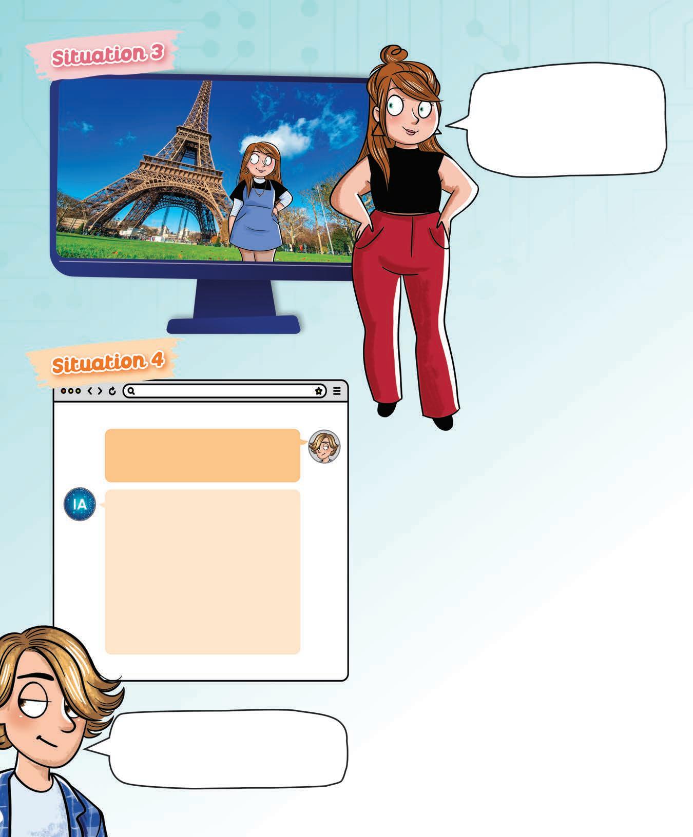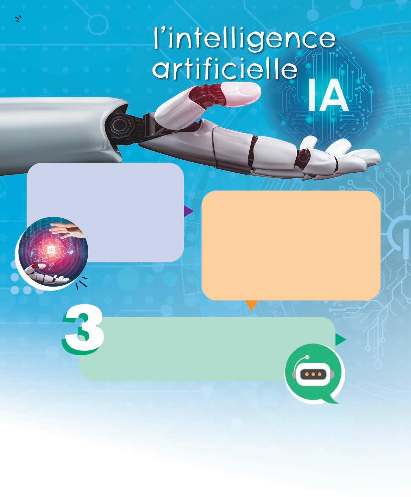 iStock.com p. C2, 3, 12, C4 : robot et média © Visual Generation. p. C2, 6 : robot bulle discussion © PikusisiStudio. p. C2, 14 : garçon © RichLegg. p. 2 : garçon © kbeis. p. 6 : IA © Biw3ds ; robot bulle discussion © Pikusisi-Studio. p. 6, 7 : fond d’écran numérique © Vitalii Gulenok. p. 7 : enfant © portishead1 ; médecin © Ignatiev. p. 8 : fille © Sima_ha. p. 9 : garçon © Chalabala. p. 10-11 : page Web © Tarchyshnik. p. 11 : tour Eiffel © Paola Giannoni. p. 13 : planète bleue et fusée © filo. p. 17 : garçon blond © Wavebreakmedia ; fille lunettes © KucherAV ; garçon © 1shot Production ; fille blonde © Portra. p. 18, 19 : ville virtuelle © WANG PING. p. 22 : garçon © Yurii Klymko. P. 23 : icône loupe et bavard © -VICTOR-.