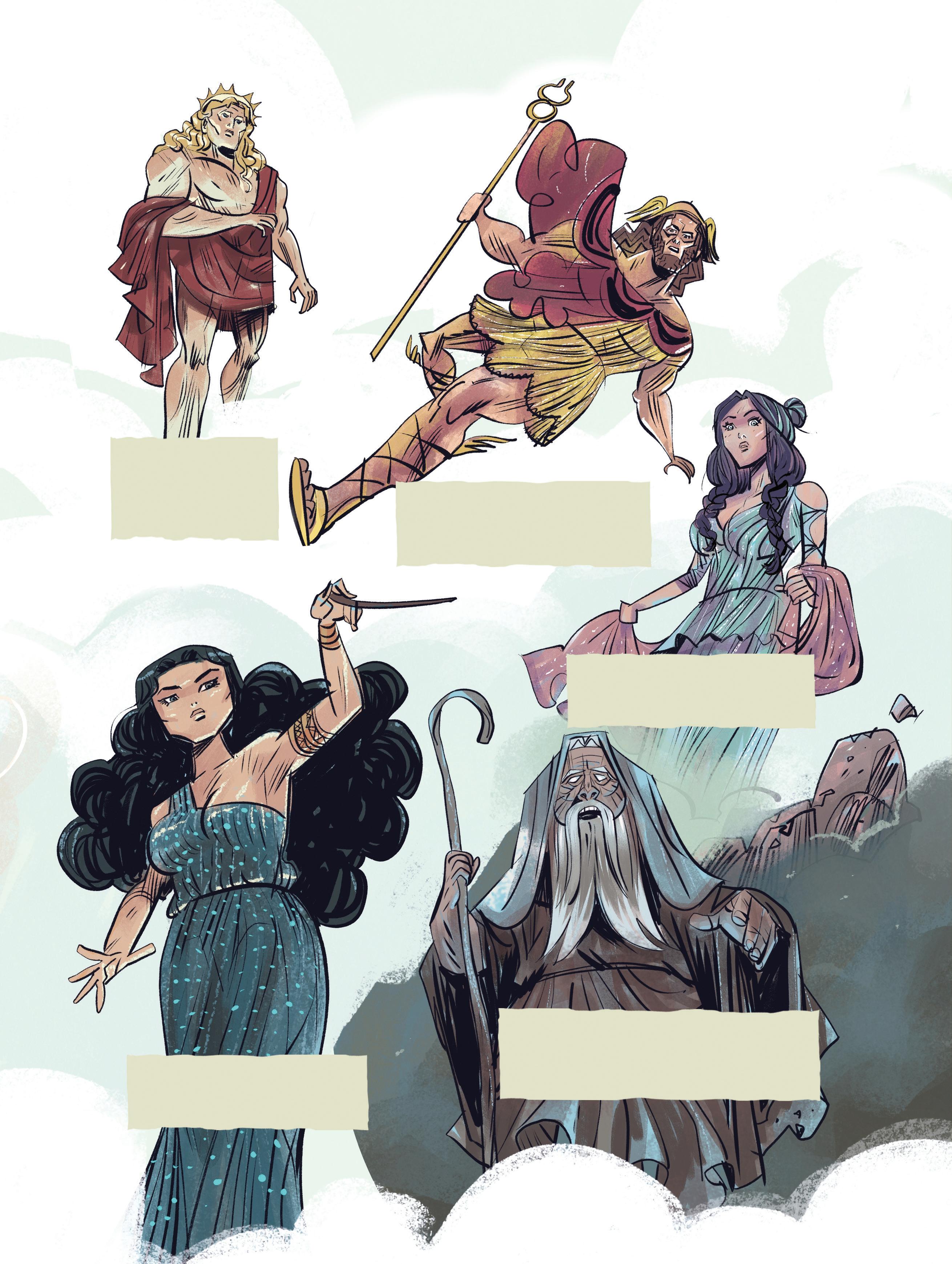 Zeus – o amontoador de nuvens. Deus supremo do Olimpo, distribui o bem e o mal. Filho de Cronos e Reia.