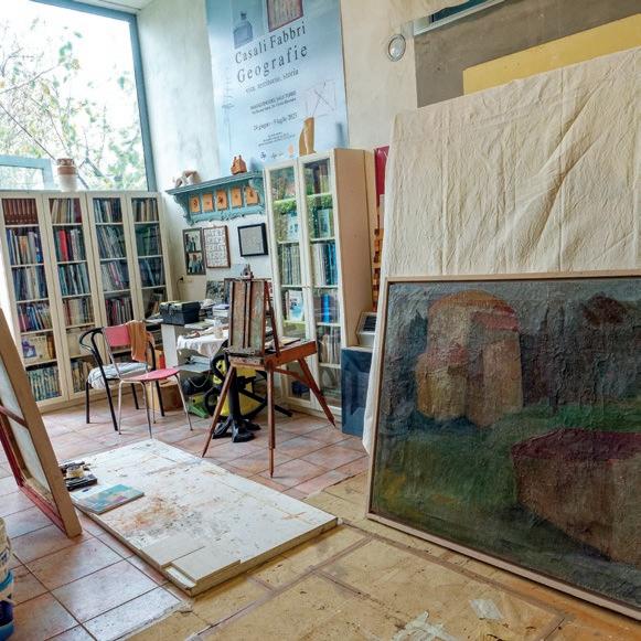 È sempre un’emozione entrare nello studio di un artista per una conversazione tendente a ricostruire il suo percorso creativo e scoprire ciò che fin dalle origini permane nel tempo come radice. Per Giovanni Fabbri quel qualcosa è la terra, sia come materia fisica che come memoria. Nato in una famiglia di agricoltori mezzadri nella collina romagnola, sul crinale che divide Predappio da Meldola dove non si vede la linea dell’orizzonte, si trasferisce nel 1960, a 13 anni, a Castiglione di Cervia a ridosso del fiume Savio, dove tuttora abita, lavora e continua a coltivare la terra. A 35 anni, dopo un breve periodo musicale – per alcuni anni suona il clarinetto esibendosi con alcuni complessi tra cui I Bizantini di Ravenna – si iscrive ai corsi liberi all’Accademia di Ravenna e successivamente ai corsi regolari, tanto che diventa per oltre 10 anni la sua seconda casa. Dall’Accademia gli resta l’impronta di Umberto Folli che dipingeva dal vero insieme agli allievi, dal quale ha appreso il mestiere.