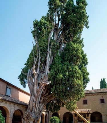 quella presenza rimane poi un segno ancor più reale e tangibile, un cipresso maestoso, alto più di 25 metri, coi suoi 800 anni tra i più antichi d’Italia che la tradizione vuole nato dal ‘bordone’ del santo, lasciato infisso nel terreno.