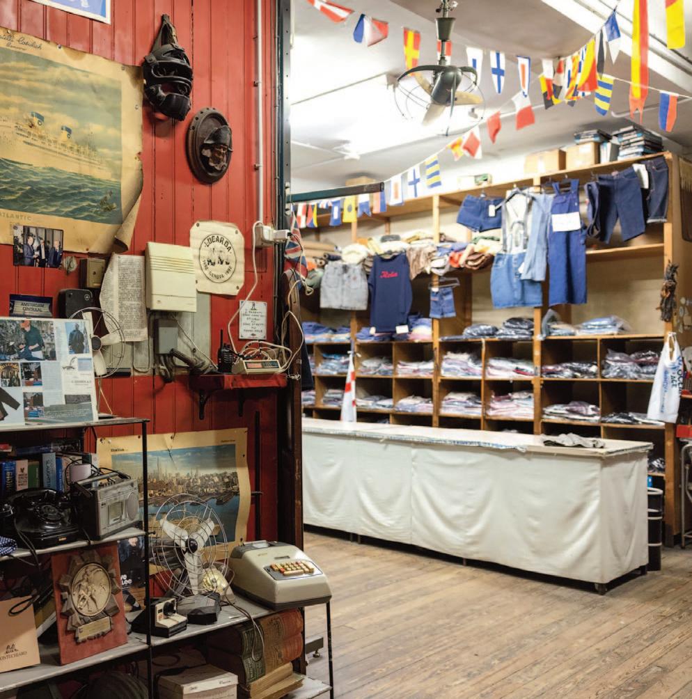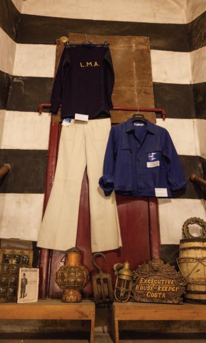 Fratelli Cosulich alle pareti e sui manichini autentici cimeli come un cappotto della marina olandese o un cappello da marinaio semplice ormai ingiallito dal tempo. Ci sono le magliette dei marittimi delle “Linee Espresso”, quelle bianche in puro cotone con la scritta blu del personale di bordo dell’Italia Navigazione e la tuta Lucarda in puro cotone, una casacca da lavoro coloro kaki indossata dagli operatori del porto dagli anni Sessanta sino a quelli Ottanta.