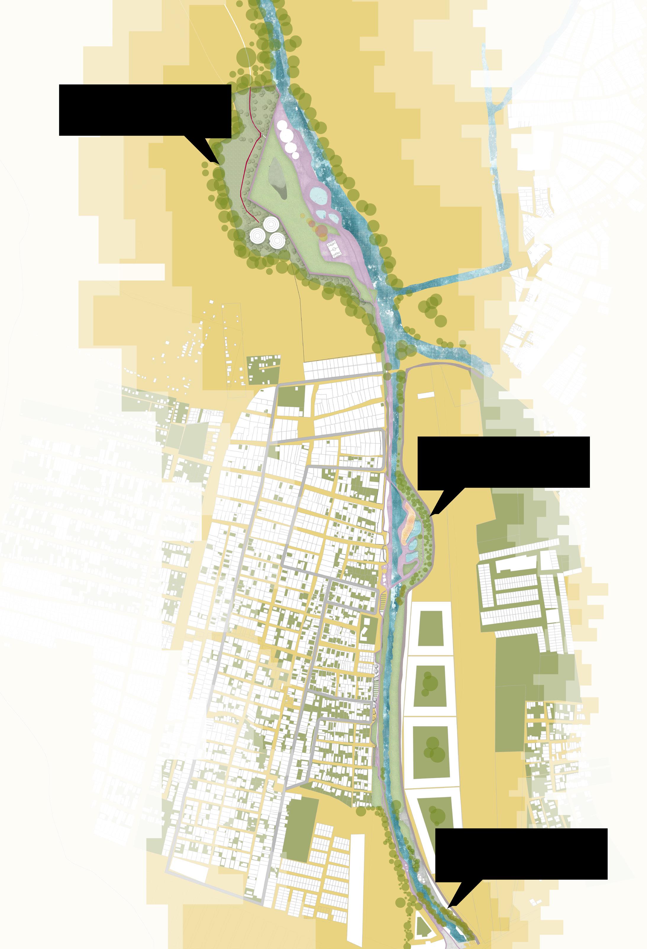 First of all, we wanted to change the perspective of the intervention area through a linear park that vindicates life, which is reflected in the proposal through the vegetation and the way it finds its way through the adversity and harshness of the asphalt.