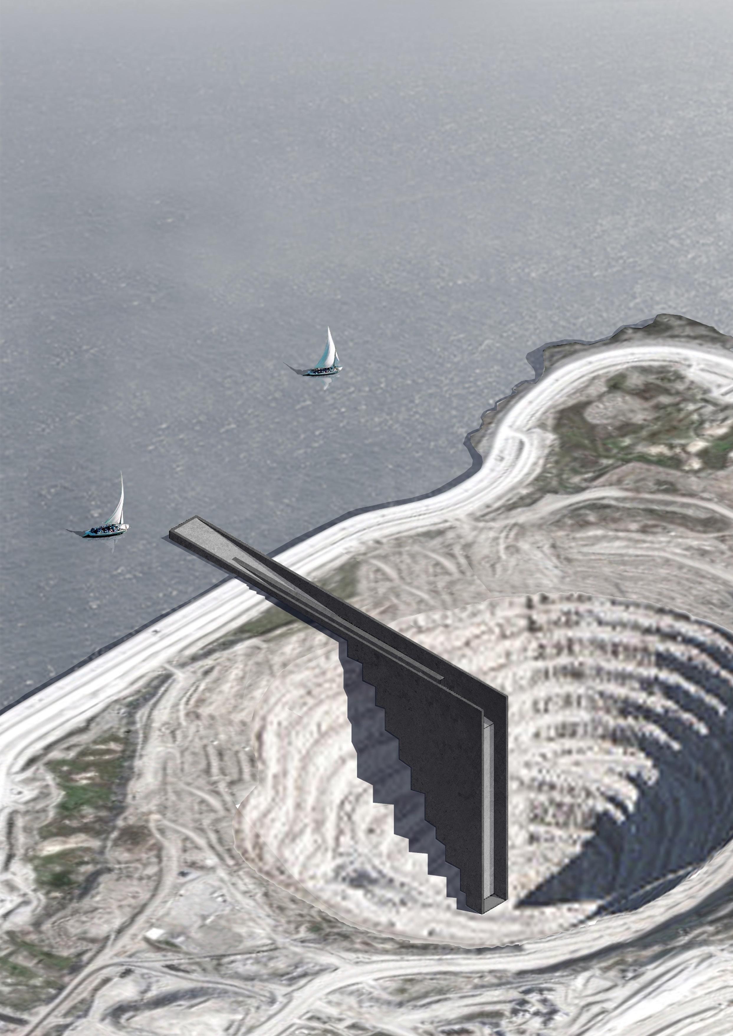 This line, now lifeless, without any movement, translates into a building that seeks to draw visitors into the devastation of what was once a lake ecosystem. The first mine is a few years away from the end of its useful life* while the construction of a third mine is on the perimeter.
