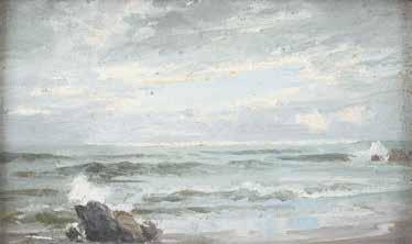 “The First Snow Storm”. Unsigned. Artist’s label verso. Oil on board, 12” x 24”. Framed 16.5” x 28.5”. 1,200/1,800