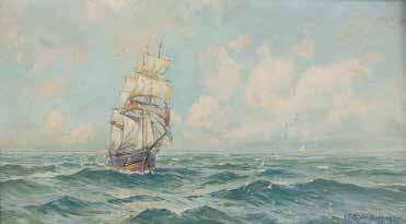Pilot boat 17. Signed lower right “Jerome Howes”. Oil on masonite, 20” x 30.5”. Framed 26.5” x 36.5”. 900/1,200