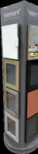 • Our Showroom Design Center is a unique rotating tower display that showcases our complete aluminum frame door offering, including all profiles, finishes, inserts, and it comes with 12 pre-installed sample doors.
