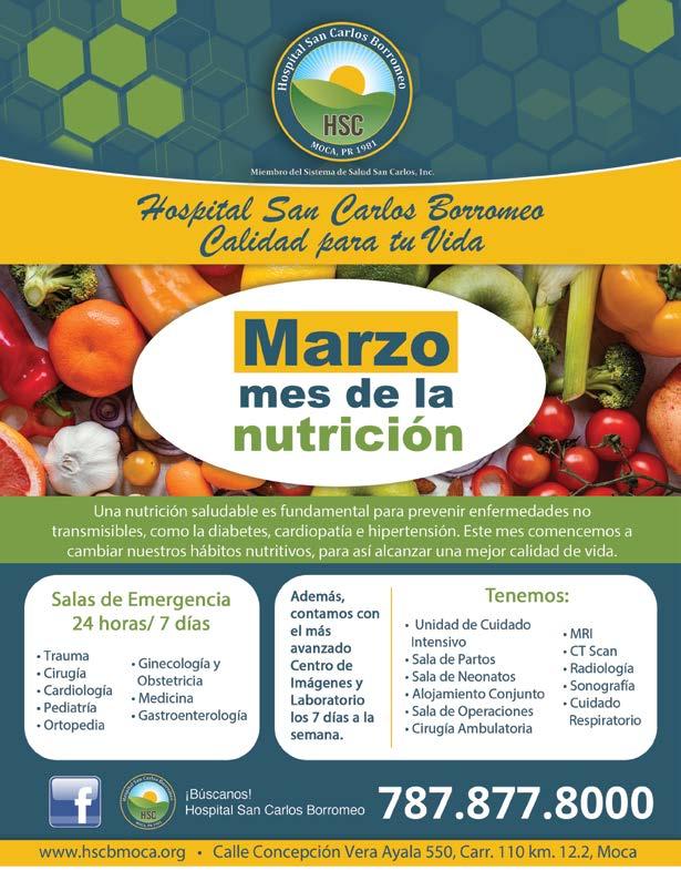 ¡Danos “like” en Facebook! Farmacia abierta 8:00 a.m. a 8:00 p.m. (lunes a viernes) Acreditado por: 787-846-4412 BARCELONETA 787-846-1102 SABANA HOYOS Centro familiar de salud y bienestar lunes - viernes | 8:00 a.m. - 4:30 p.m. En Atlantic Medical Center contamos con servicios de: MARZO Mes de La Mujer y la Nutrición www.atlanticmedical.org Centro de Imágenes Nutricionista Ginecología Laboratorio Mamografías • Sonografías • Rayos X