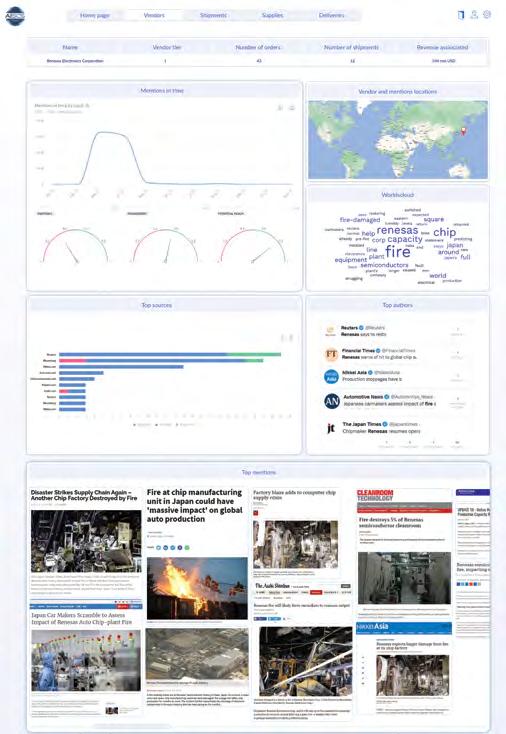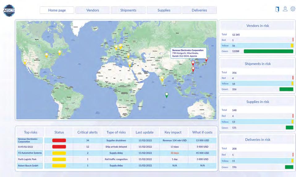 explains. “Technology innovation thus has a crucial role in our future success. We develop artificial intelligence algorithms to draw the proper conclusion from different internet sources, and learn from previous disruptions. Our software learns the supply chains of our clients to predict problems better.”
