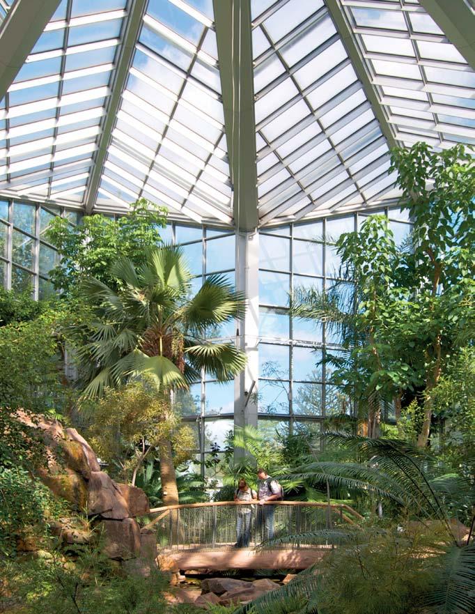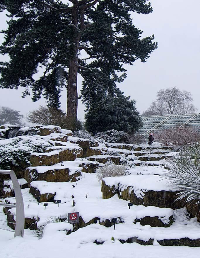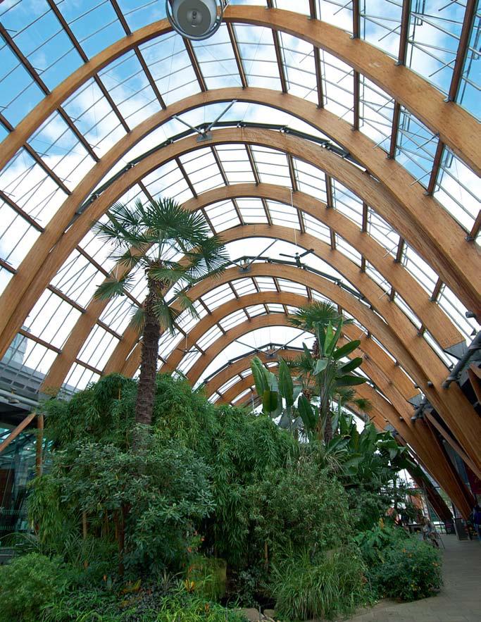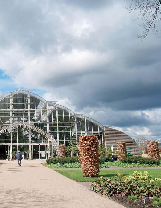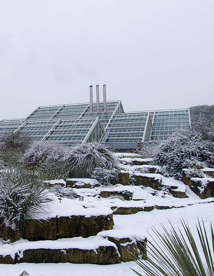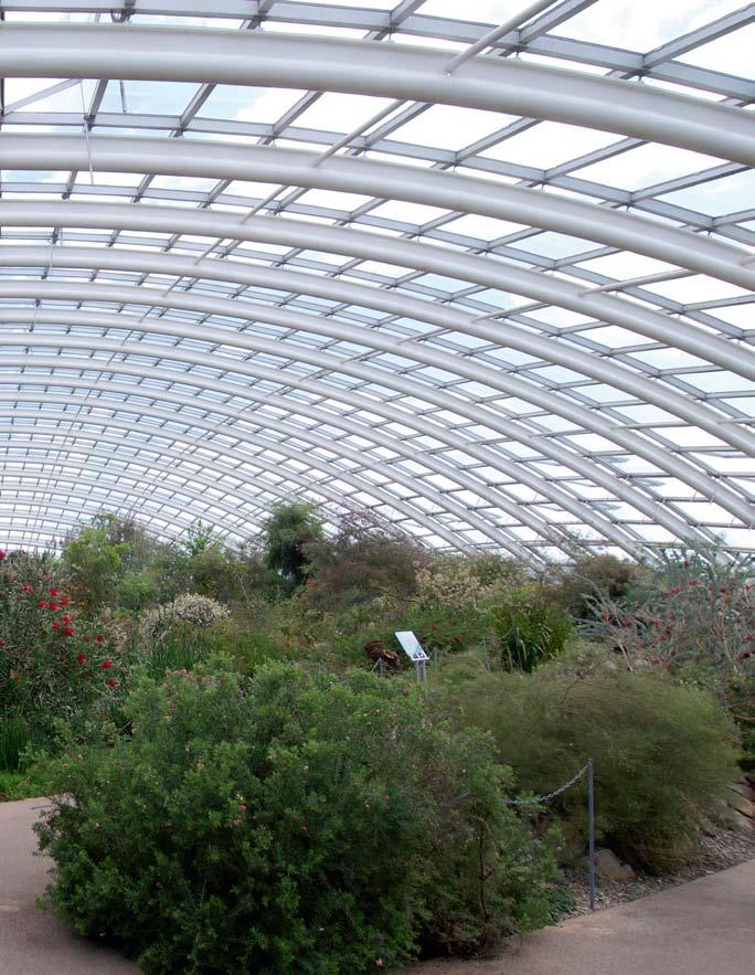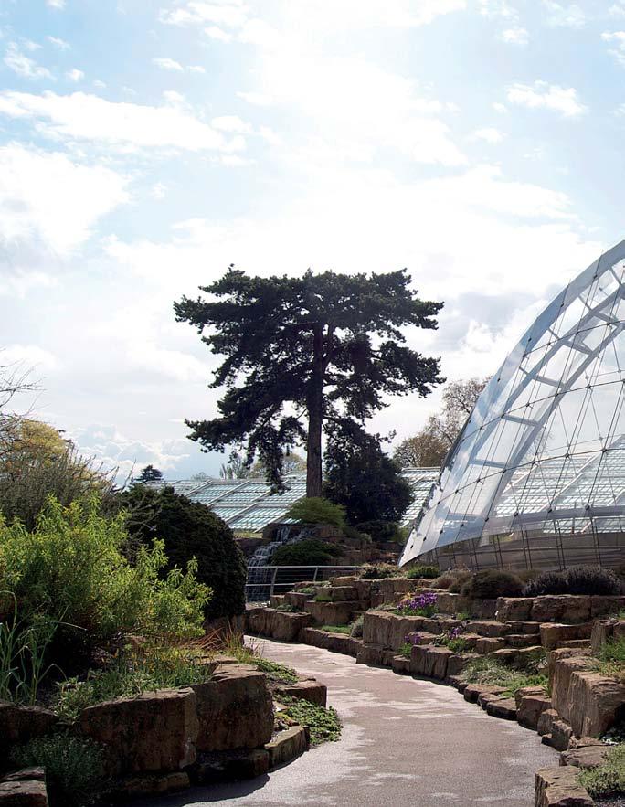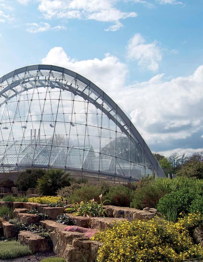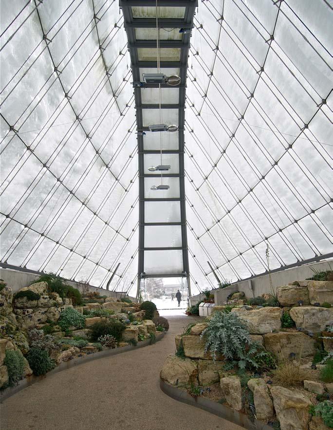 pianto architettonico. Nel clima britannico, freddo ma per niente alpino, la serra ricrea le condizioni estreme di vita per le piante sulle Alpi. Vincitrice di numerosi premi e disegnata dallo studio di Chris Wilkinsons e Jim Eyre, è una struttura di acciaio, vetro e calcestruzzo, modello di architettura ecosostenibile e di risparmio energetico. Lunga 16 metri e alta 10, a forma di due archi gemelli collegati tra di loro, è dotata di un ingegnoso sistema di ventilazione, straordinario nella sua semplicità, che, sfruttando l’“effetto camino”, consente