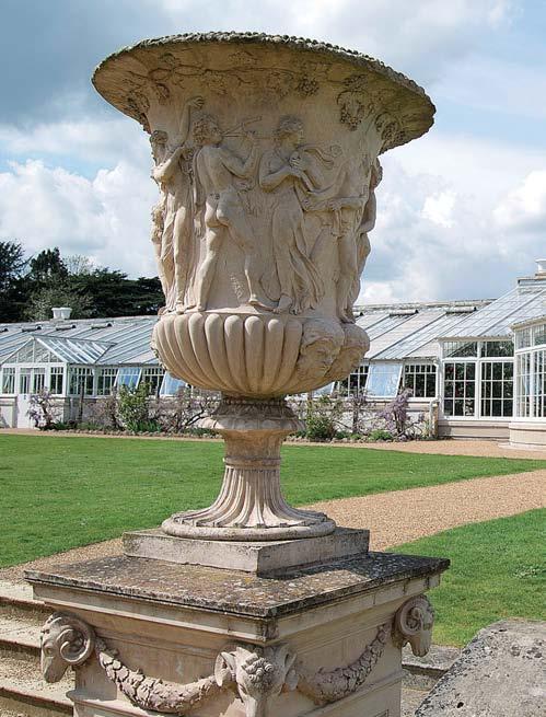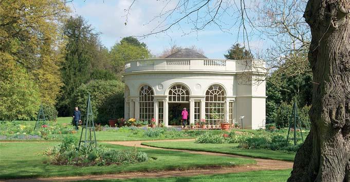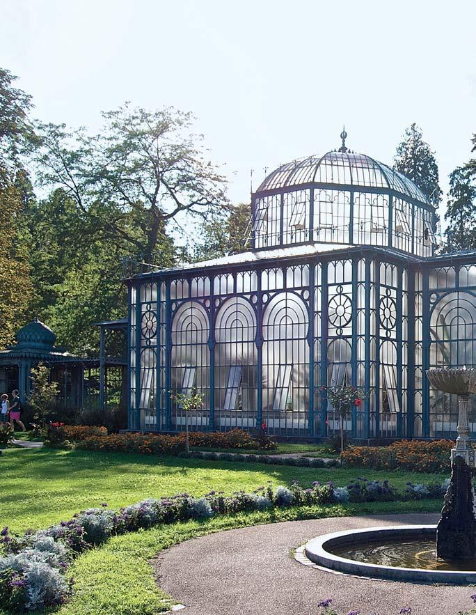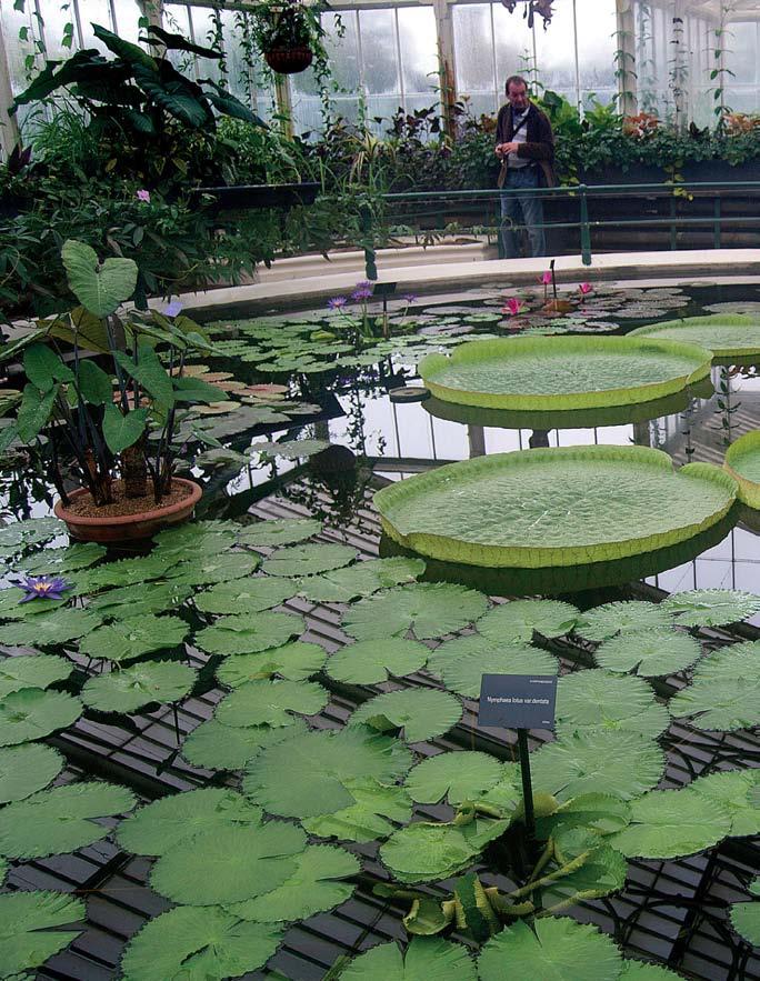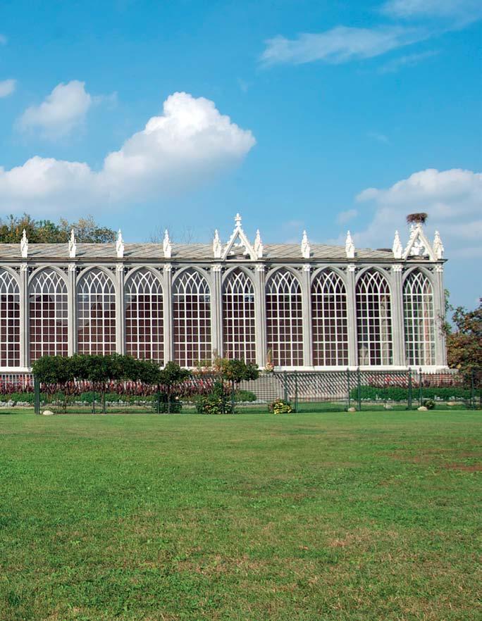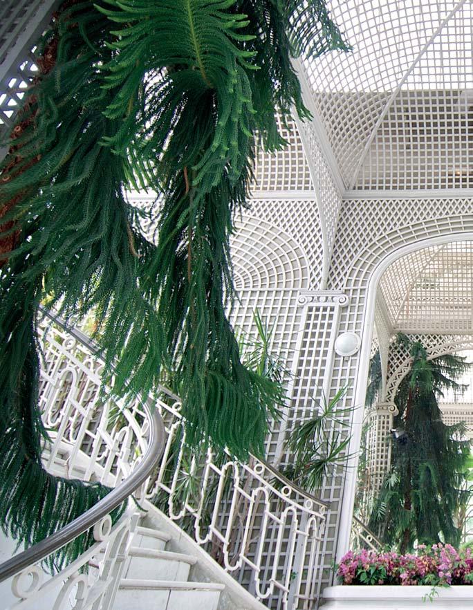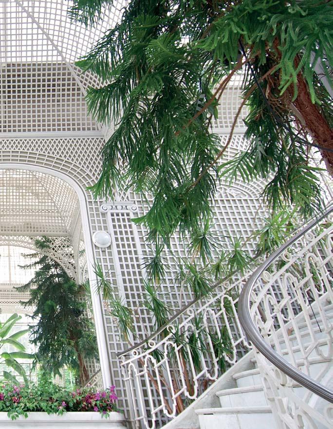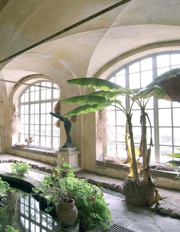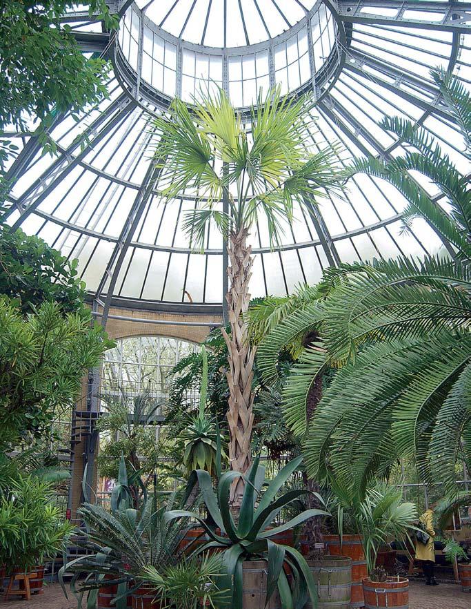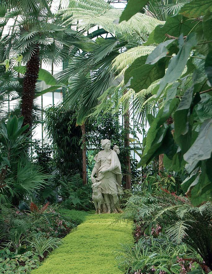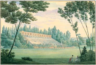 Sotto: Una veduta della celebre Serre chaude, fatta costruire nel 18041805 da Joséphine de Beauharnais nella tenuta della Malmaison, la sua residenza preferita. Famosa in tutta Europa, la serra, qui in un acquerello di Auguste Garneray (1785-1824), fu meta di studiosi, personaggi illustri e regnanti. L’imperatrice vi fece affluire piante da ogni parte del mondo; vi coltivava, tra le altre, il gelsomino, la rosa, l’ortensia e la violetta di Parma, di cui era appassionata. Per la quantità di vetro che vi fu utilizzato, la serra può essere considerata l’antesignana delle grandi costruzioni in vetro e metallo del XIX secolo. Contiguo alla serra vera e propria un altro edificio ospitava una serie di fastosi saloni di rappresentanza.