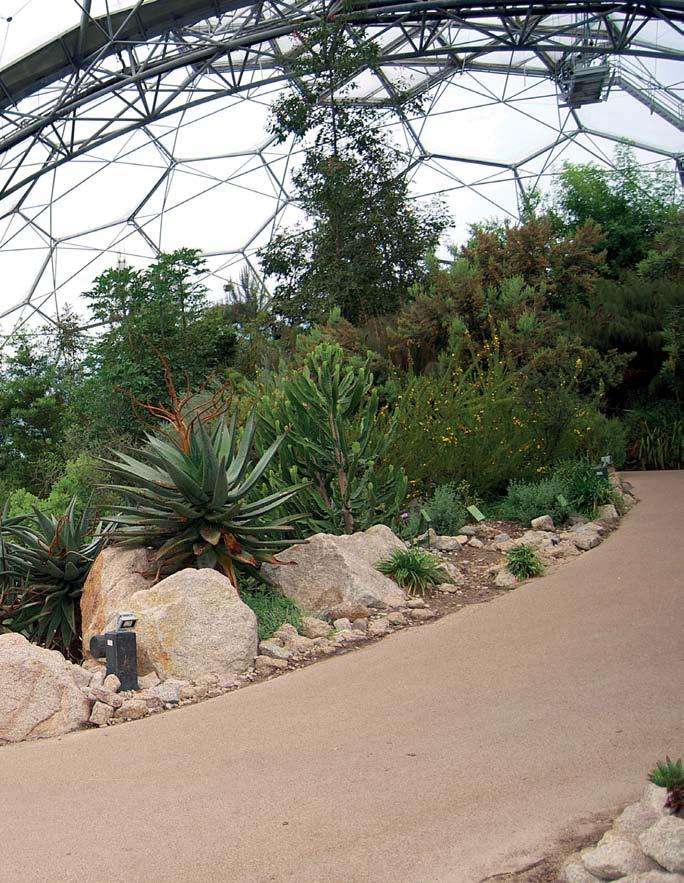 i visitatori, grandi e piccini, alla visione di un mondo possibile, più bello, migliore. Nell’arco di pochi anni il sogno sarebbe diventato rapidamente realtà. La cava avrebbe ospitato alcuni giganteschi Biomi, di cui due, quello tropicale e quello mediterraneo, coperti. Il Bioma tropicale, la più grande foresta pluviale in cattività, copre 1,56 ettari, è alto 55 metri, largo 100 e lungo 200. Vi crescono banani che producono frutti, caffè, caucciù e bambù giganti. Nel Bioma mediterraneo, di dimensioni ridotte (55 metri di altezza, 65 di larghezza