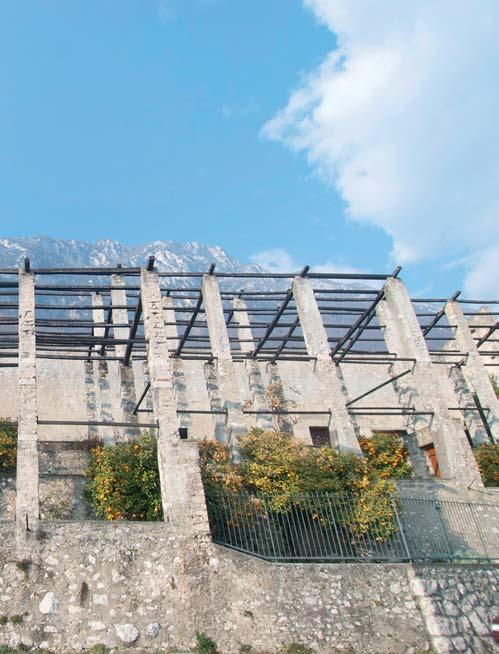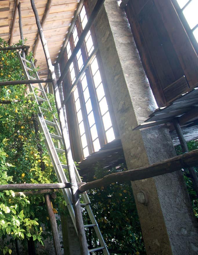 Nella pagina a fianco: Uno scorcio della limonaia “La Malora” di Gargnano, una delle più antiche ancora in attività, tenuta in vita dalla grandissima passione del proprietario, Giuseppe Gandossi.
