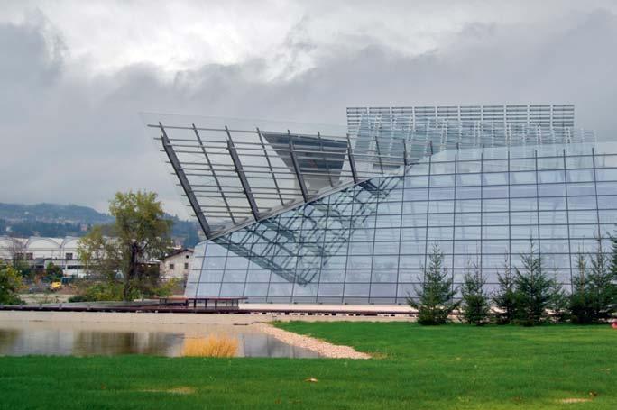 Sopra: Renzo Piano ha messo il suo ingegno al servizio della scienza creando il MuSe, il Museo delle Scienze di Trento, erede dello storico Museo delle Scienze Tridentino. Lungo 130 metri e largo 35, 7 livelli, di cui 2 interrati, il MuSe richiama nel suo caratteristico profilo l’andamento delle montagne circostanti. In questo edificio luminoso, di grande impatto visivo e costruito all’insegna dell’ecosostenibilità, dove i temi conduttori sono l’evoluzione, l’ambiente e la biodiversità, non poteva mancare una spaziosa serra (copre infatti una superficie di 600 metri quadrati). Riproduce un’area delle foreste dell’Eastern Arc, catena di monti della Tanzania, caratterizzate da un’elevata biodiversità.