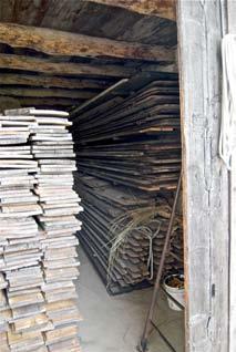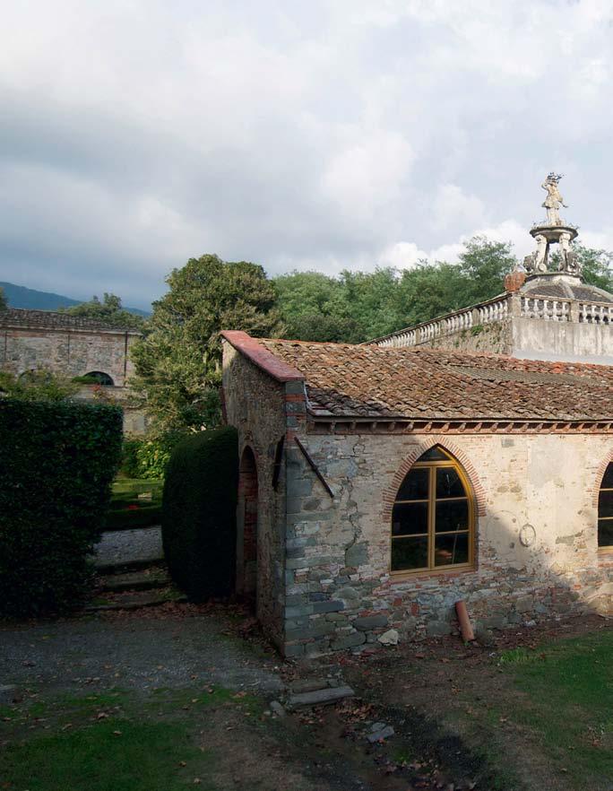 In basso: Le assi per la copertura invernale della limonaia a primavera venivano accuratamente accatastate all’interno del “casello”, un alto edificio dove si riponevano i numerosi attrezzi di cui si servivano i giardinieri per curare le piante.