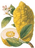 In basso: Un frutto di cedro in una tavola di Pancrace Bessa, tratta dall’opera botanica Nouveau Duhamel (1800-1819).