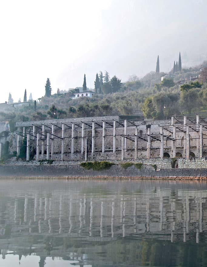 Chi oggi voglia risalire in barca il lago da Salò verso Gargnano, seguendone l’andamento sinuoso, scoprirà, con lo stesso stupore che ha colto tutti i viaggiatori dei secoli passati, la costa disseminata di costruzioni fantastiche, oggi in gran parte in rovina, che sono state paragonate a templi o a castelli fiabeschi. Riconoscibili per il colore biancastro della pietra, appaiono e scompaiono tra il verde degli alberi, scintillando al sole: sono le vestigia delle serre, spesso di grande pregio architettonico, come quella della settecentesca Villa Bettoni-Cazzago a Bogliaco, che per secoli hanno dato lustro e ricchezza ai paesi del Garda, grazie alla produzione di limoni e cedri esportati in tutta l’Europa del Nord, fino ad arrivare sulla tavola degli zar di Russia.