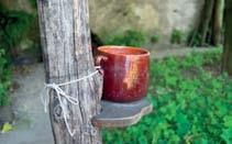 A destra: l’antico metodo per misurare la temperatura all’interno della limonaia. Se l’acqua contenuta nel recipiente collocato accanto a un palo di sostegno tende a gelare è tempo di riscaldare l’ambiente.