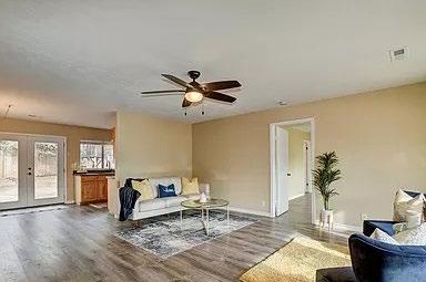 Welcome home! Have a seat and relax on the covered front porch with your favorite book or beverage. This spacious 3 bedroom, 2 bathroom gem offers versatile living spaces. The front living room doubles as a formal dining area or study, perfect for your lifestyle. Enjoy the open concept main living area, seamlessly connecting to the kitchen and dining area. Ample cabinetry, an island, and an eat-on breakfast bar make the kitchen a chef’s delight. Privacy is ensured with split secondary bedrooms from the master suite. Outside, the large backyard beckons for play and entertainment. Schedule your appointment today!