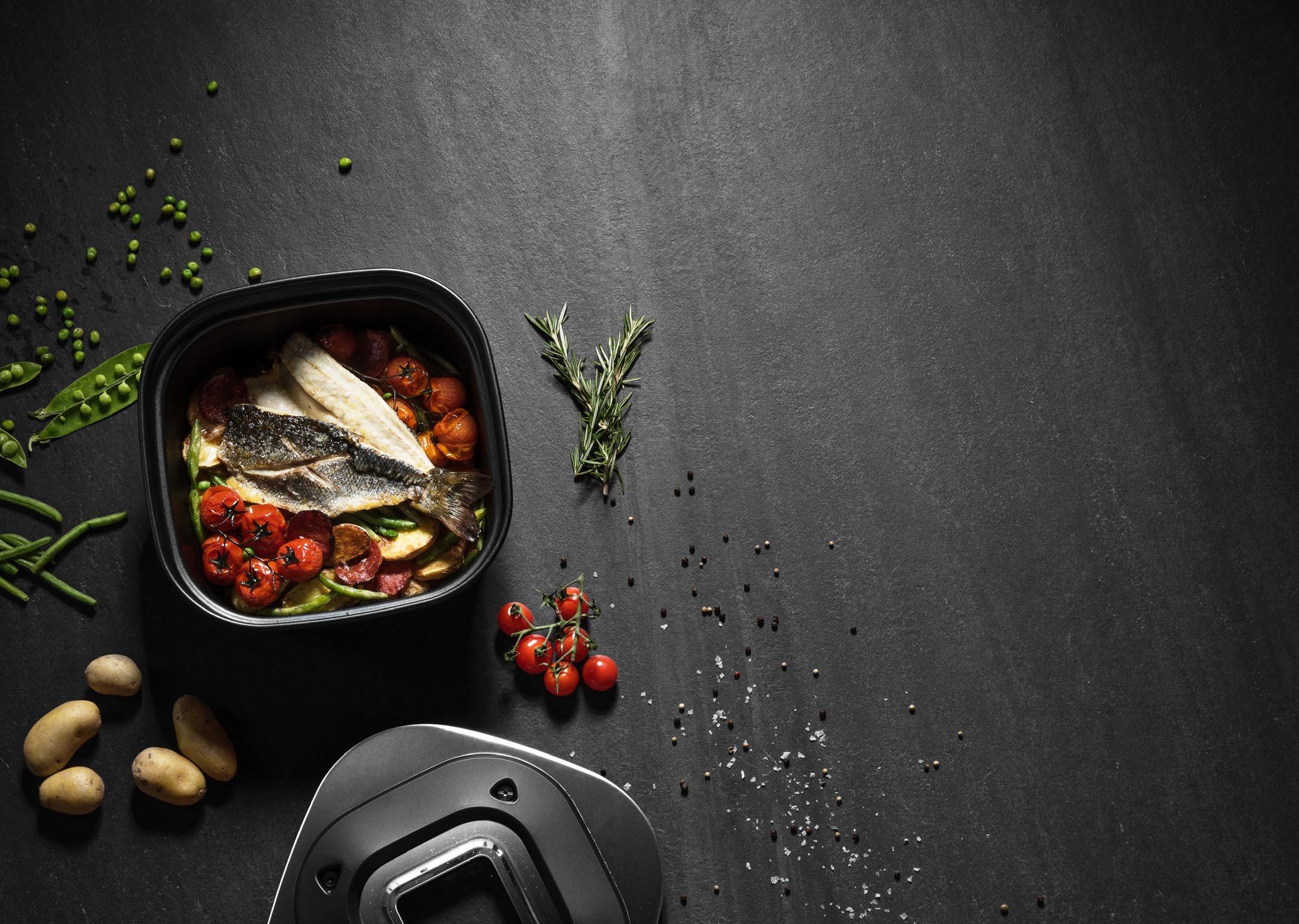 Brambory předvařte v lehce osolené vodě zhruba 10 minut. Nádobu Pečenky lehce vymažte olivovým olejem.
