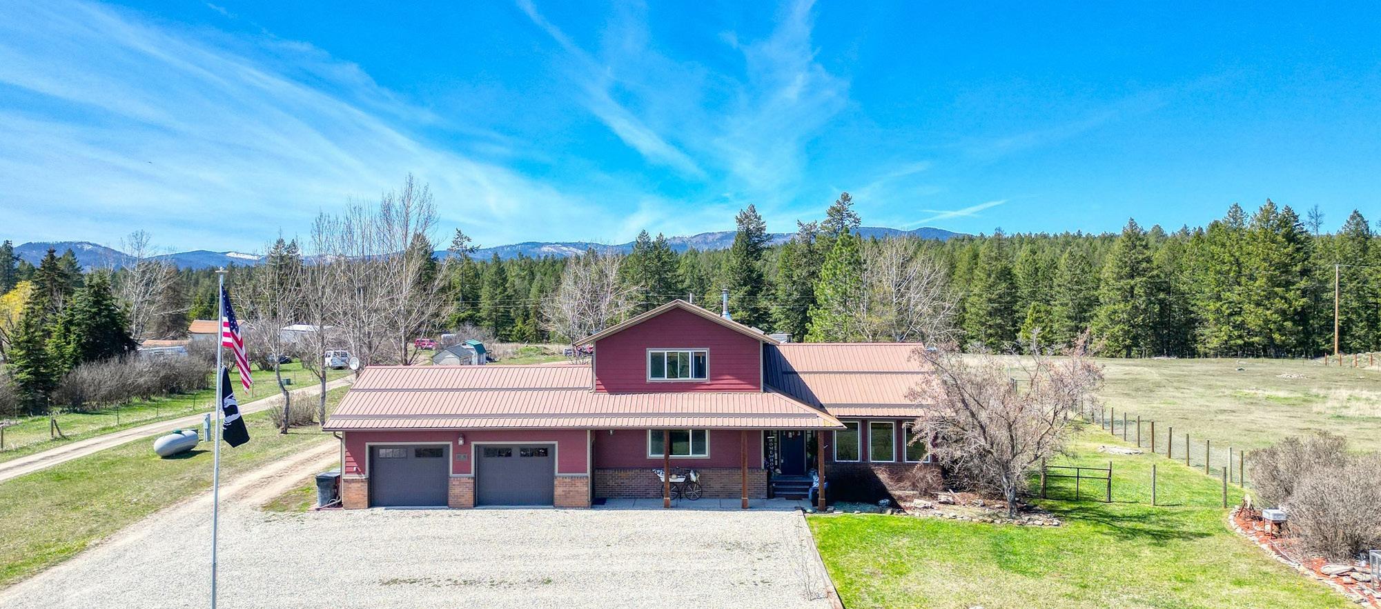 Sitting on 5 flat acres of pristine Montana landscape, 26190 Slidinghorse Lane in Arlee, MT offers an idyllic escape with stunning mountain views. This meticulously crafted home, built by the owner, showcases thoughtful design in every detail. Just 20 minutes North of Missoula, this beautiful property features 4 bedrooms and 3 1/2 baths, ensuring ample space for comfortable living. With a 3-car garage, there’s abundant room for your vehicles and more, providing convenience and storage options. Additionally, a to-be-finished fenced area for horses awaits, catering to equestrian enthusiasts right at home. This home boasts hand-scraped acacia hardwood floors, rustic hickory cabinets, and granite countertops, showcasing a blend of luxury and rustic charm.