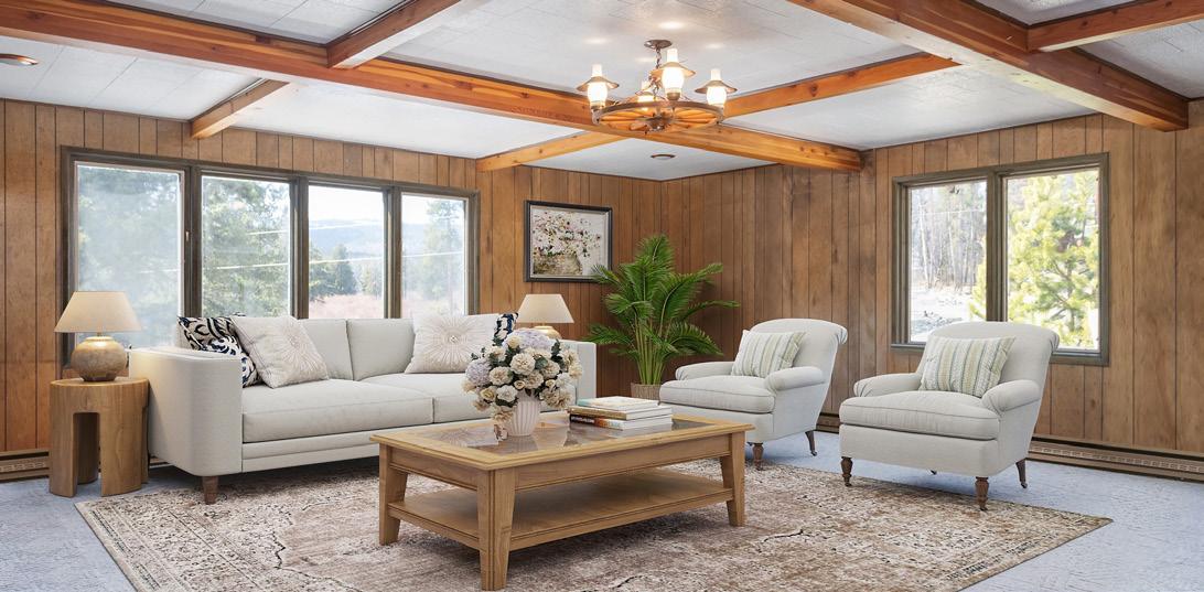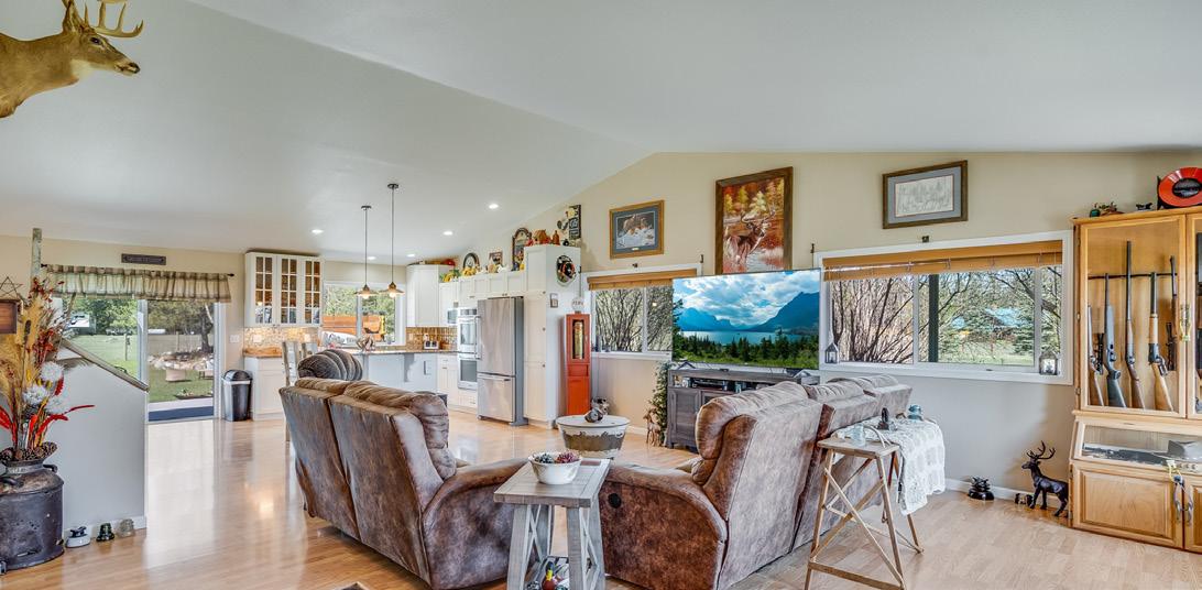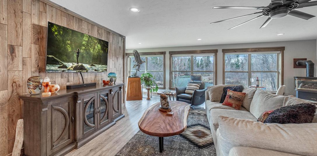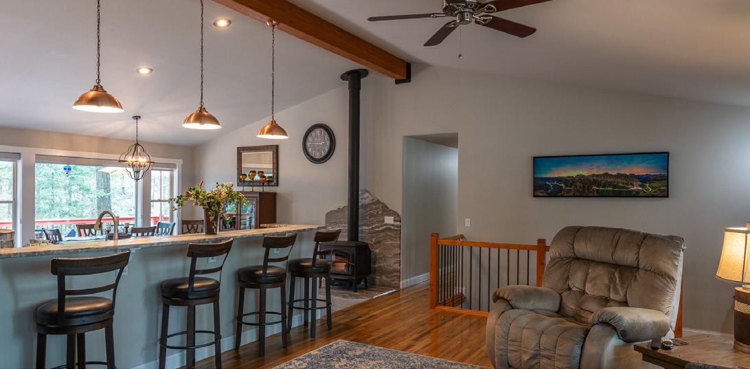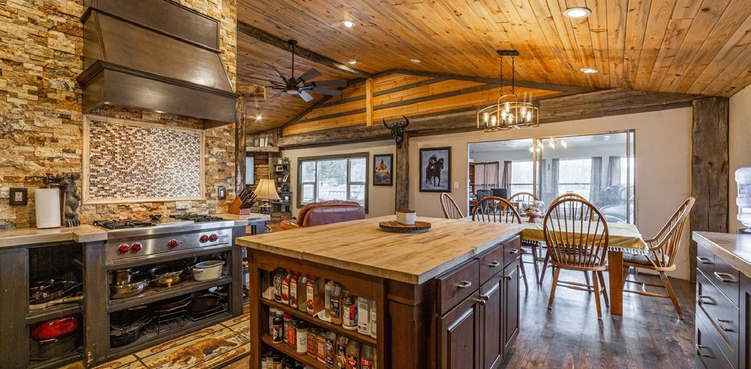 Nestled on an expansive 3.24-acre property, this estate boasts 400’ of pristine lake frontage, offering a truly unparalleled waterfront living experience. The main residence spans an impressive 3,360 Sq. Ft., showcasing meticulous craftsmanship and attention to detail throughout. The floor plan seamlessly integrates the living spaces, creating a warm and inviting atmosphere for both relaxation and entertaining. As you explore the property, you’ll discover a guest house that offers a private retreat for visitors. With 980 Sq. Ft. of space, it features a wellequipped kitchen, a full bathroom, a queen bed, a private patio, and a spacious bunkroom. his delightful abode provides comfort, functionality, and a touch of rustic charm for a memorable stay.