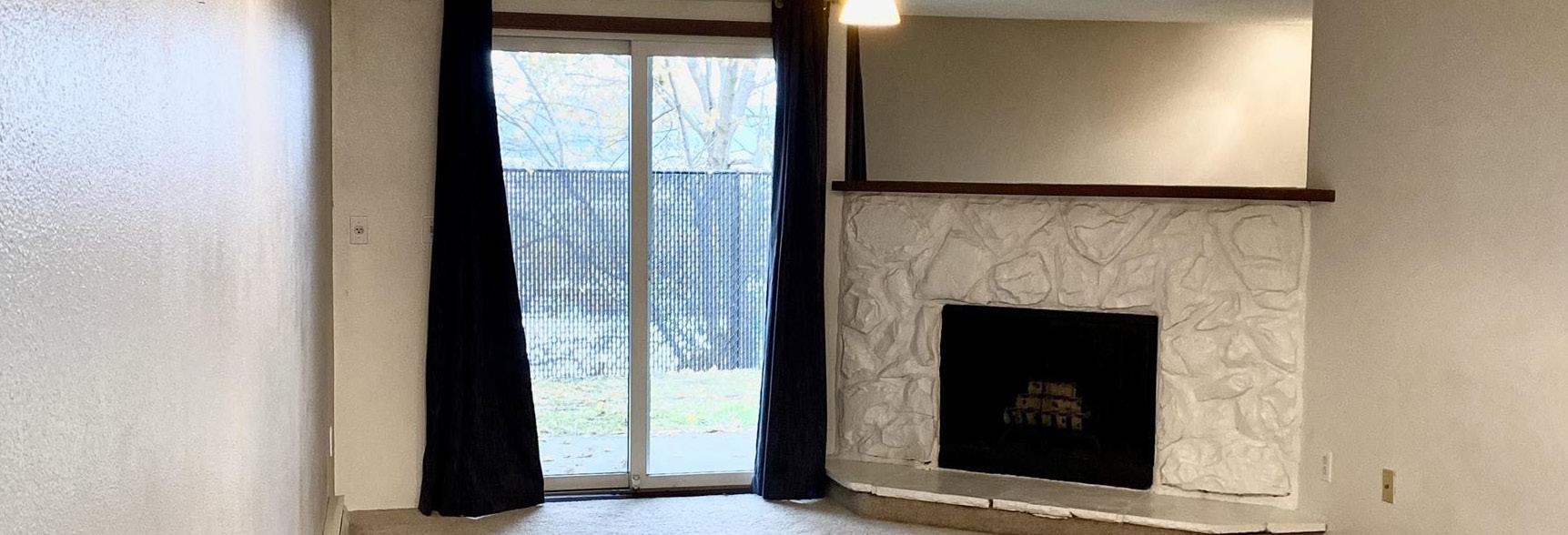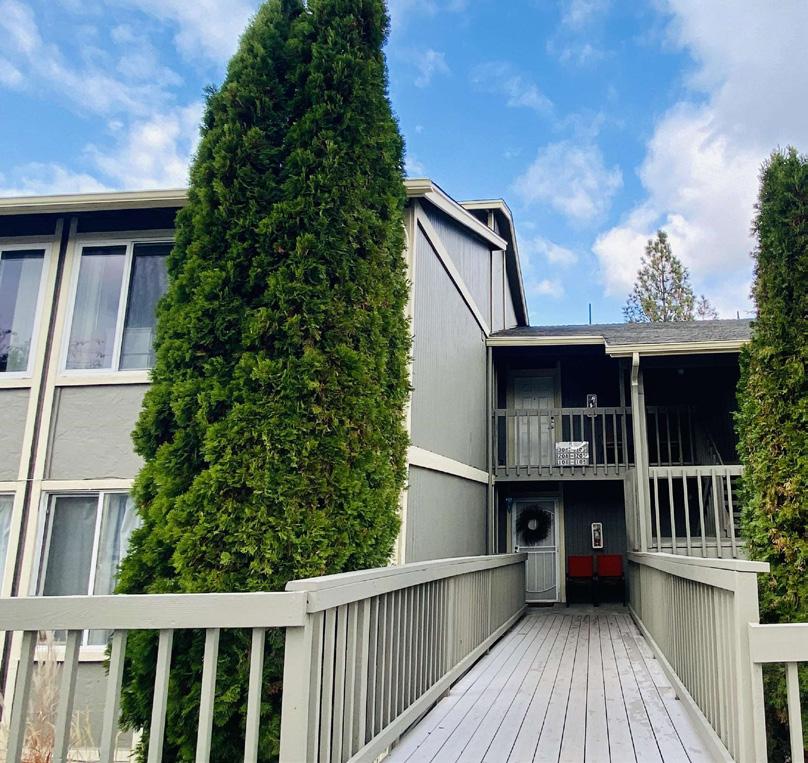 Move in ready Spokane Valley, ground level, 2 bedroom, 1 bathroom condo offering an informal dining area. The living room has wood-burning fireplace and slider door to a side yard with outdoor storage. The primary bedroom has a walk-in-closet. Community amenities include 2 swimming pools, hot tub, sauna, fitness center, community center, and an assigned covered parking.