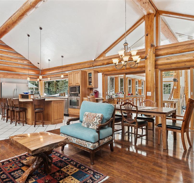 Nestled amidst the serene wilderness bordering forest service land, this secluded haven offers an idyllic retreat just outside the historic town of Butte. Set on 29.57 wooded acres, this equestrian property epitomizes the epitome of mountain living. The residence, boasting 4 bedrooms and 4 bathrooms, welcomes you with an open-concept layout that seamlessly integrates the living room, dining area, and kitchen. Hardwood flooring, high ceilings, and a grand stone fireplace adorn the living room, while expansive windows capture panoramic views of the surrounding mountains and forest, infusing the space with natural light.