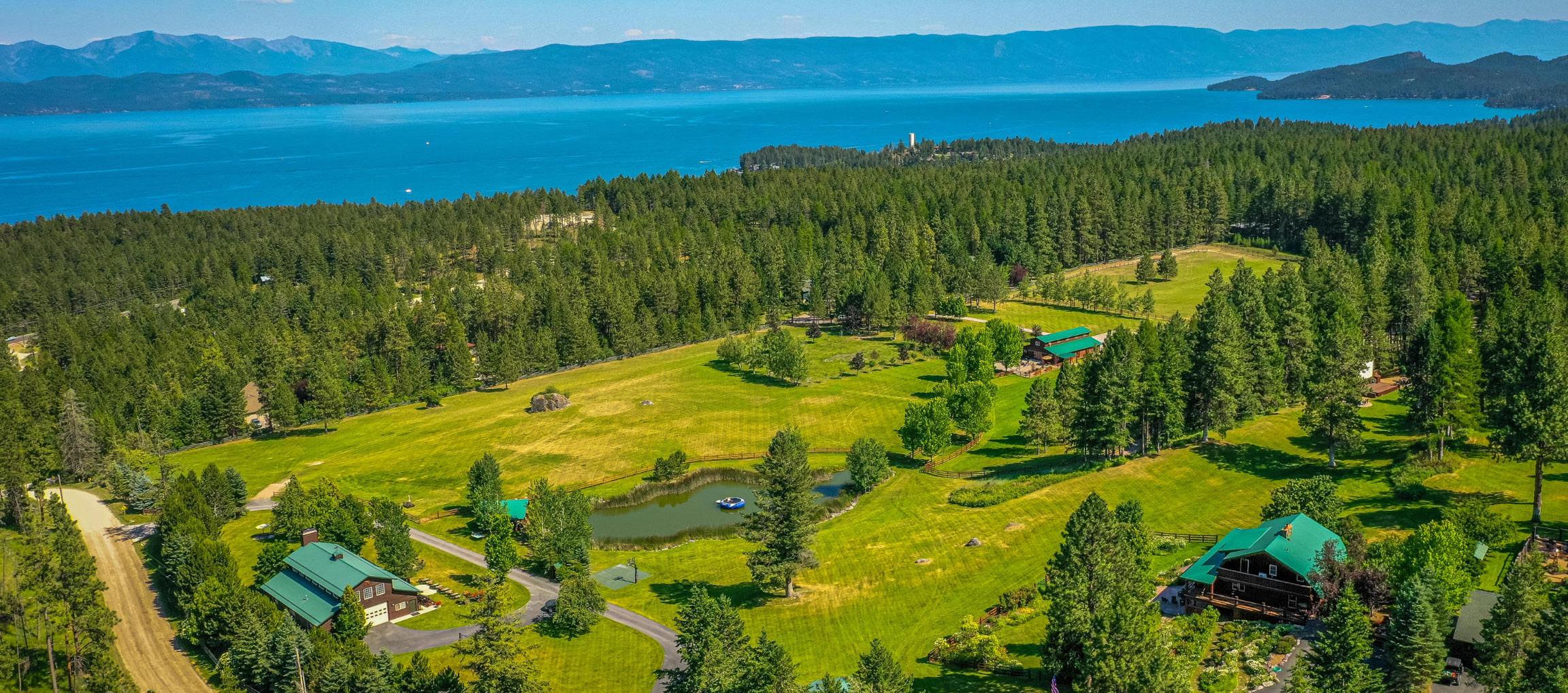 This property offers 20+ acres of picture-perfect land with multiple accommodation options, endless outdoor activities and a host of must-have features making this the ideal place to escape the hustle and bustle of everyday life. The property offers 13 bedrooms and 10 bathrooms providing plenty of room for large groups and gatherings. Whether you choose to spend your days relaxing in the peace and quiet, fishing on the pond, taking in the spectacular views of Flathead Lake or on horseback, this estate offers something for everyone. Indoor and outdoor movie theaters as well as a stage and event area offer endless entertainment.