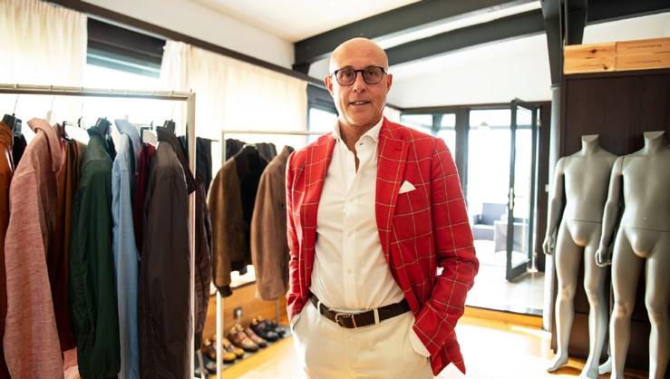 “It’s all about dressing with your own personality and not someone else’s”. This is the new elegance of Alberto Vedelago. Simplicity, good taste, grace and care that are inextricably tied to deportment. Alberto Vedelago is not just a designer, but a multifaceted figure who encompasses new and different nuances of what was once a dressmaker. He makes made-to-measure and handcrafted suits for his clients and, at the same time, investigates their needs and “personality” to create a bespoke suit that gives a precise authority and deportment when worn. Not a simple madeto-measure, but a real suit designed specifically for every customer. A suit that, once worn, becomes a second skin, as if it had always been ours, and that, unconsciously, leads us to have a precise authority and deportment that we do not have when we are wearing garments designed not specifically for us and our style.
