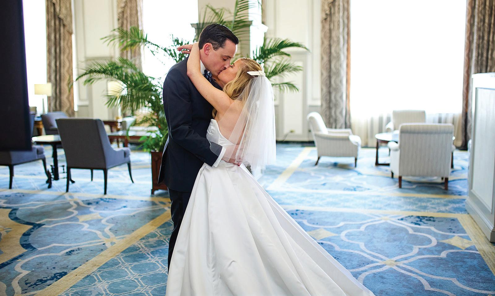 With Charleston’s abundant holiday sparkle, December ushers in a whole new level of wedded festivity. The architectural flourishes at The Hotel Bennett offered Rhett and Jack a wedding cake of a setting in its own right, where they were ideally situated to join in the city’s seasonal joy in a most magical fashion. Nods to a winter wonderland included luminous garlands adorned with pearly white orbs and bows in velvety blues. The spot was also right at home for Jack, who has familial ties to Bennett Hospitality.