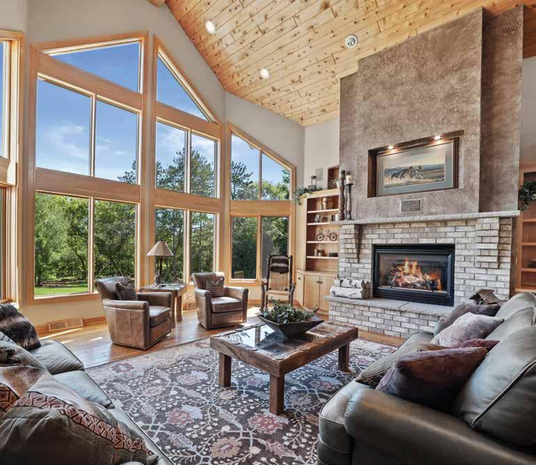 The stunning details of this home, from top to bottom, convey thoughtful planning and a keen eye for quality. Walk through the front doors, with artful prairie-style glass inserts, to a Great Room where wood, stone, and a park-like vista create a remarkable ambiance. The towering wall of windows brings the outside, inside. Hand-scraped hickory floors, a cathedral ceiling of birch, and a two-story fireplace create a feeling that is hard to describe, almost like a warm embrace.